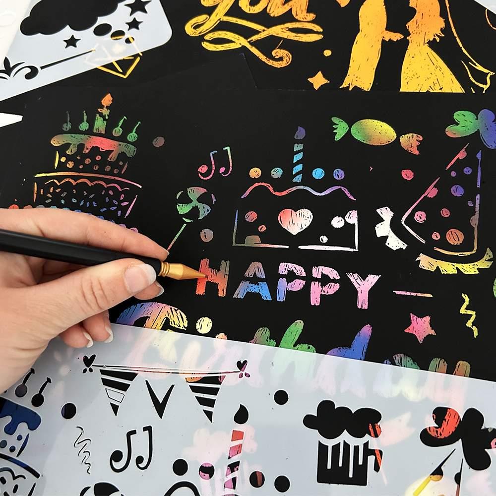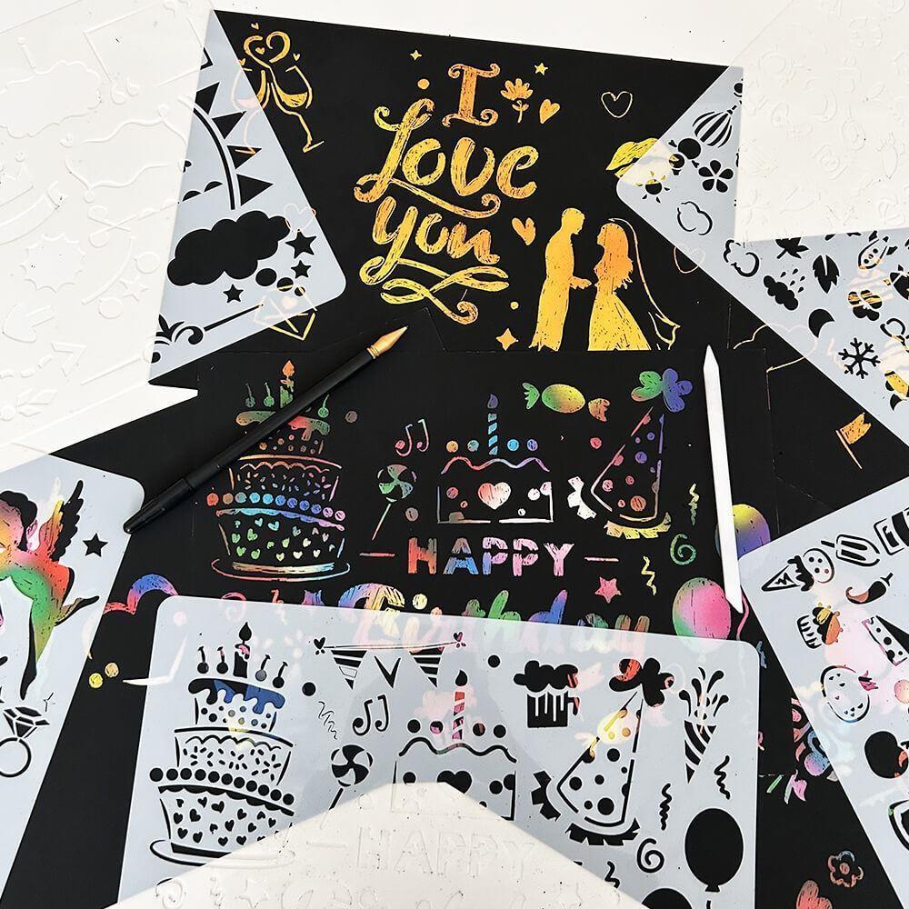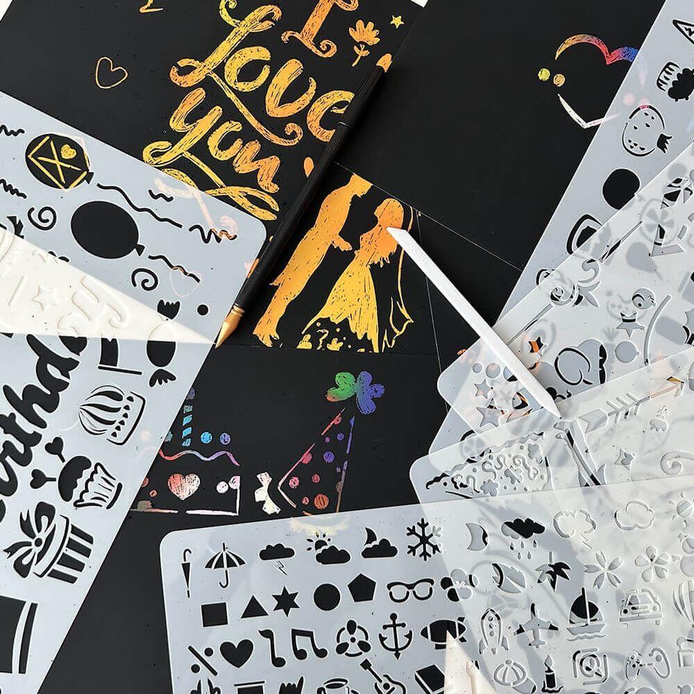 Kdo by neměl rád chvilku pro sebe, kdy může si zarelaxovat a odpočinout si po náročném dni. Pokud chcete trávit odpočinek kreativněji, než sezením u televize, nebo snad hledáte něco, s čím si zaplníte dlouhou chvíli, jste na správném místě. S touto vyškrabávací sadou, se kterou můžete popustit uzdu své fantazii, totiž nešlápnete vedle. Zahrnuje totiž nejen nádherné vyškrabávací papíry, se kterými vytvoříte své originální obrázky, ale také set šablon, jež vám dodají inspiraci.