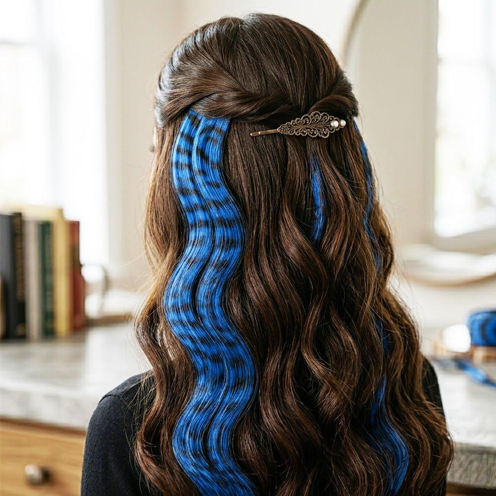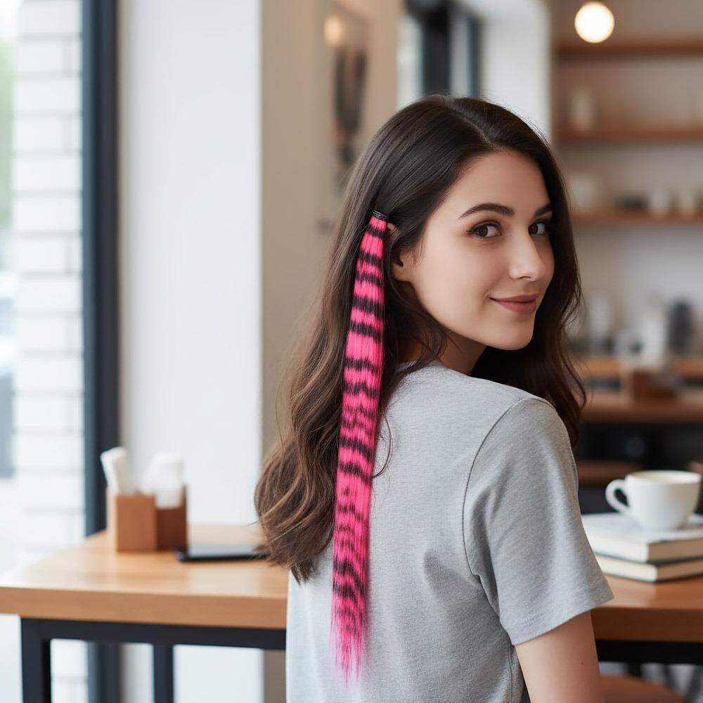 Ať už jste rebelující teenagerka, která hledá nový způsob, jak se odlišit od davu, nebo stylová mladá žena, která se chystá na párty, náš barevný příčesek je tu pro vás. Užijte si výhody změny účesu bez dlouhého a náročného procesu stříhání a barvení vlasů. Tento trendy příčesek se jednoduše nandavá do vlasů a i jeho samotné sundání je snadné. Příčesek si můžete zastřihnout podle vašich požadavků.