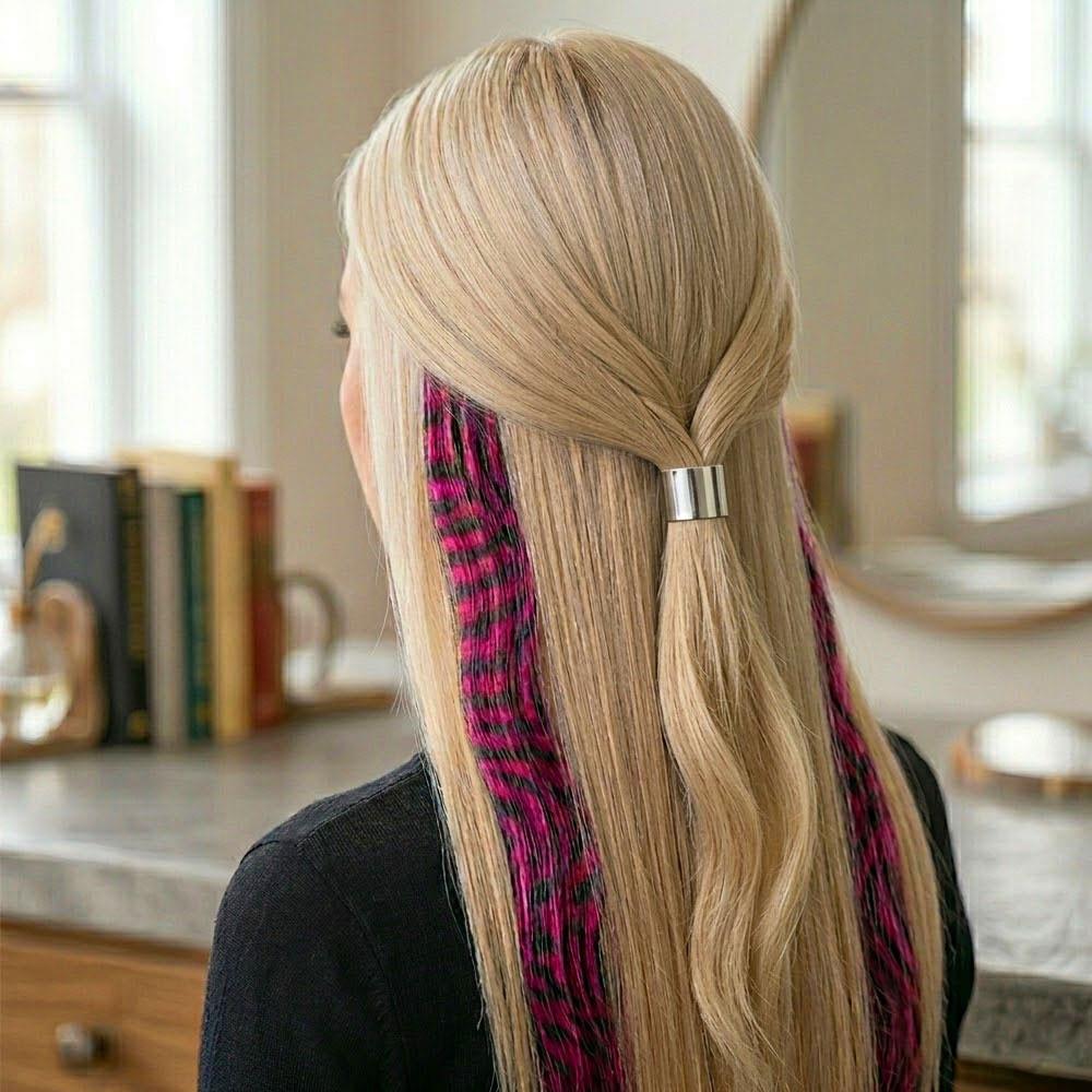 Ať už jste rebelující teenagerka, která hledá nový způsob, jak se odlišit od davu, nebo stylová mladá žena, která se chystá na párty, náš barevný příčesek je tu pro vás. Užijte si výhody změny účesu bez dlouhého a náročného procesu stříhání a barvení vlasů. Tento trendy příčesek se jednoduše nandavá do vlasů a i jeho samotné sundání je snadné. Příčesek si můžete zastřihnout podle vašich požadavků.
