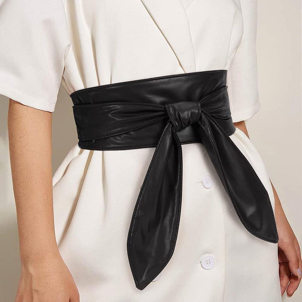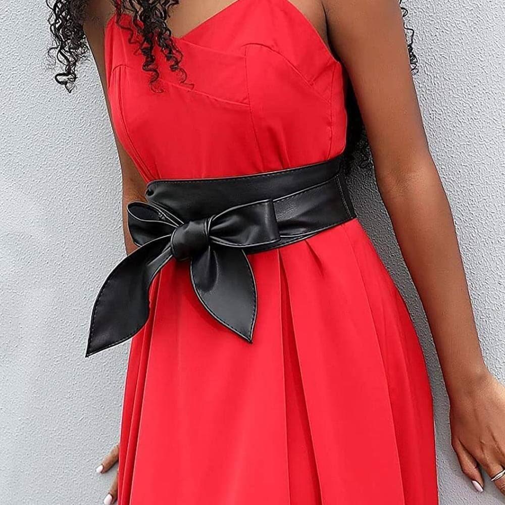 Ozdobný pásek z imitace kůže a zavazováním na mašli