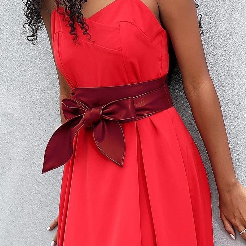 Ozdobný pásek z imitace kůže a zavazováním na mašli
