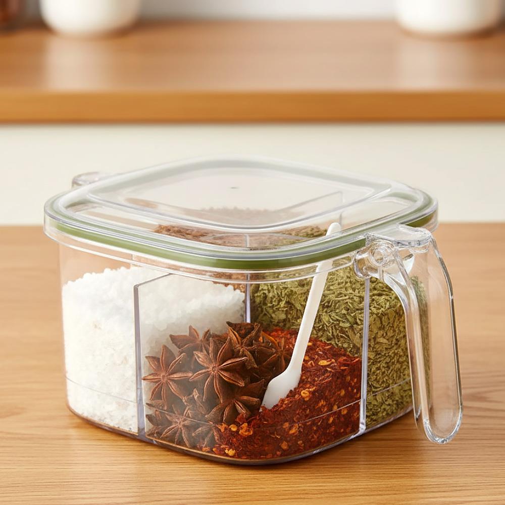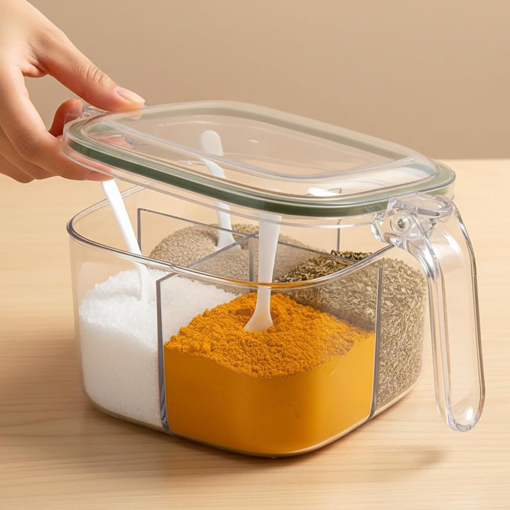 Obrázek z Dělená dóza s úchytkou - 4 přihrádky, 4 lžičky