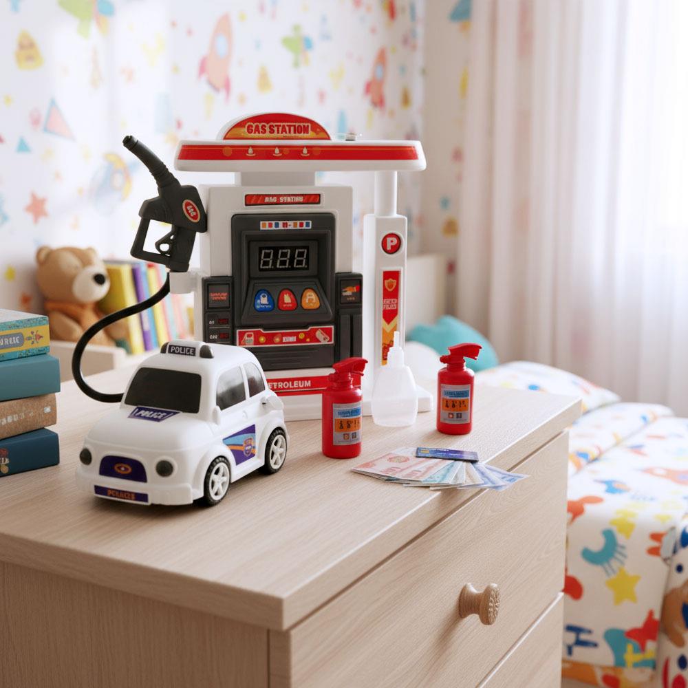 Hrací sada, která vypadá jako skutečná čerpací stanice! Děti si mohou natankovat autíčko, zaplatit kartou, vybrat typ paliva a sledovat, jak auto vypouští mlhu a vyhýbá se překážkám. Nechybí ani světelné a zvukové efekty, hasicí přístroj nebo bankovky. Perfektní dárek pro každého malého řidiče.
