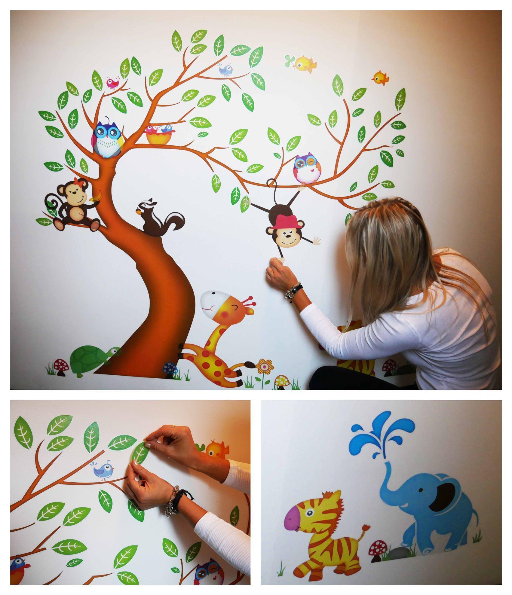 Chcete vylepšit pokojíček svých dětí, ale nechce se vám do malování? S touto samolepkou ho oživíte jednoduše, rychle a bez námahy a až nový design přestane děti bavit, jednoduše ho sundáte bez zanechání stop po lepidle a poškození zdi. Aplikaci zvládne každý, stačí zapojit fantazii a šikovné ruce. Nejdříve nalepíte kmen, poté jednotlivé větve, které ozdobíte lísty, nakonec celý obrázek rozveselíte barevnými zvířátky. Jednotlivé samolepky nalepujte opatrně tak, aby pod nimi nevznikaly vzduchové bubliny.
