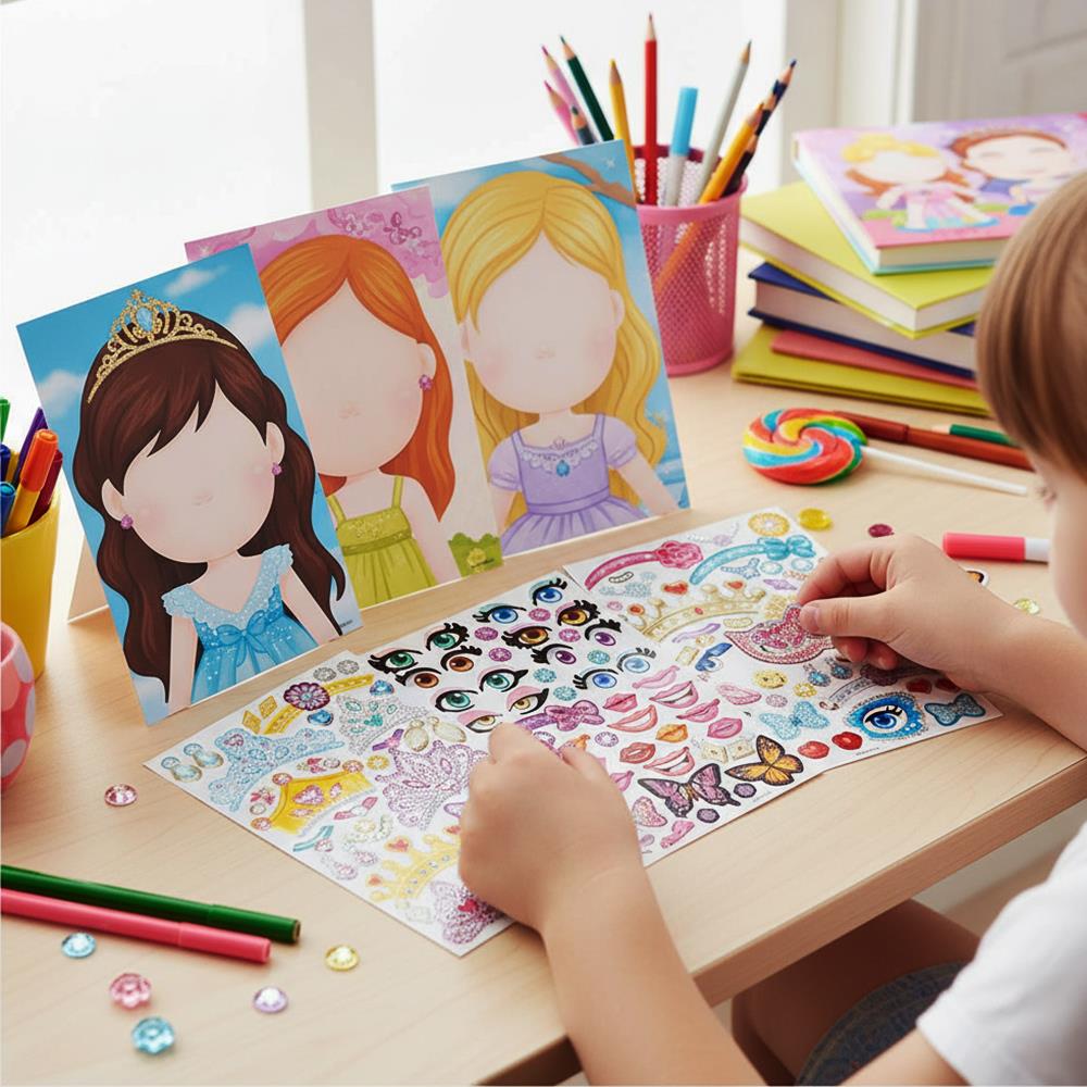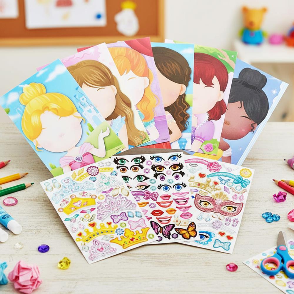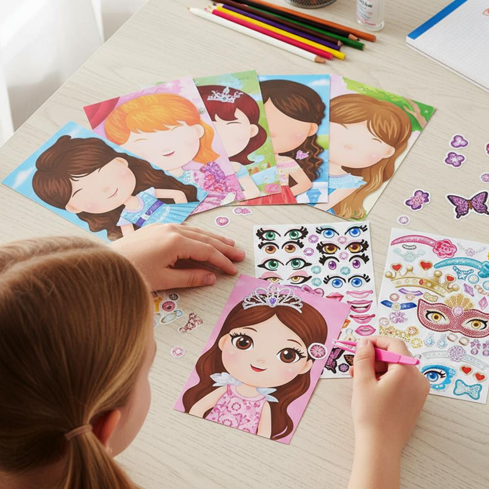 Dětská sada samolepek obsahuje krásné obrázky princezen a archy se samolepkami, které lze libovolně přidávat na obrázky a malé holčičky si tak mohou vytvořit svou vlastní princeznu dle jejich fantazie. Samolepky zároveň podporují a rozvíjí kreativitu Vašich holčiček.