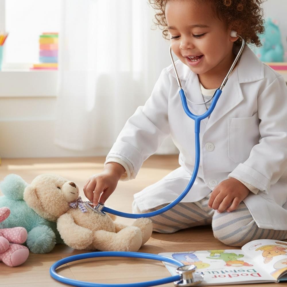 Stetoskop navržený pro dětské hraní Podporuje odvahu při lékařských návštěvách Interaktivní hračka, která podporuje povědomí o zdraví