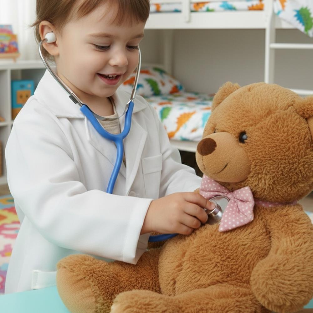 Při dětské hře na doktory nesmí chybět základní doktorské vybavení, které mívají doktoři omotané kolem krku, aby bylo vždy po ruce! S dětským stetoskopem perfektně nasimulujete návštěvu u doktora, která se díky hře stane zábavnou záležitostí, a děti z ní tak v reálné situaci nebudou mít strach. Hračka v podobě stetoskopu se hodí k domácímu hraní a vyšetření rodičů, sourozenců či plyšáků. Skvěle se hodí ale i do školky, kde se děti mohou seznámit s doktorským prostředím a průběhem vyšetření.