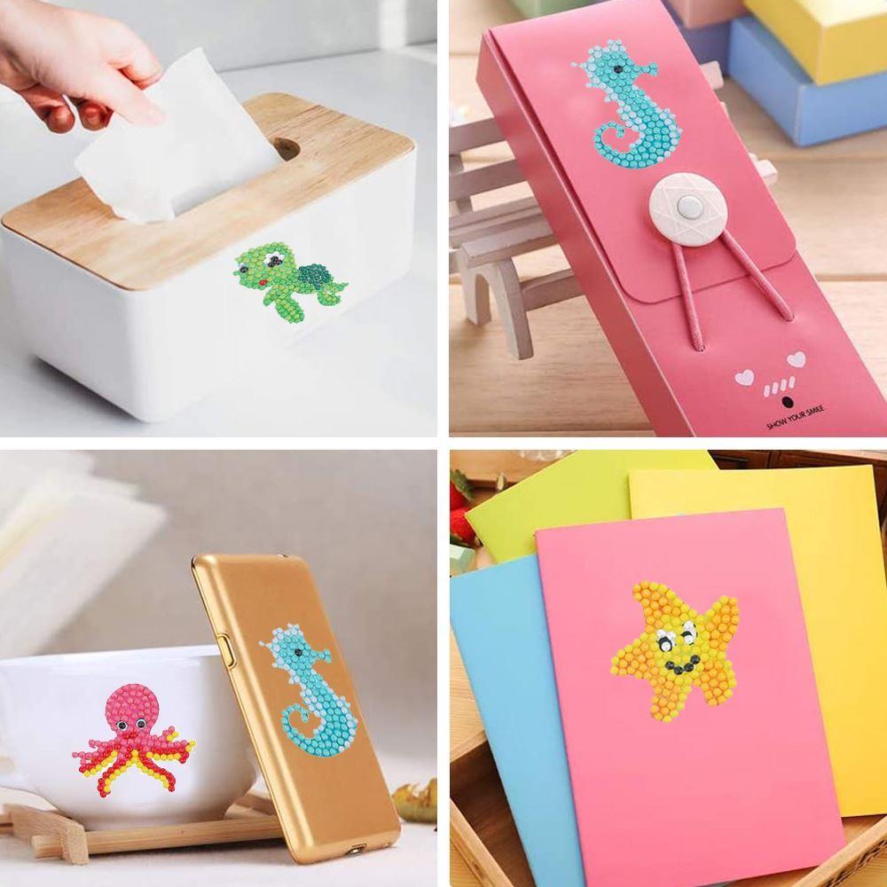 Zabavte děti na delší dobu. Diamantové malování v podobě výroby samolepek zaujme každé dítko, které rádo tvoří nebo vyrábí. Vyšperkovat s barevnými kamínky můžete zvířecí samolepky v roztomilém stylu. Výsledkem bude radost a možnost nalepit si samolepky třeba na nábytek nebo na telefon či sešit.