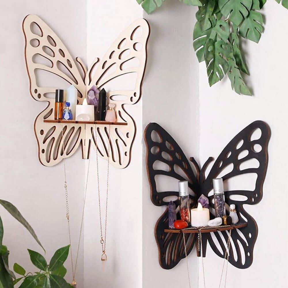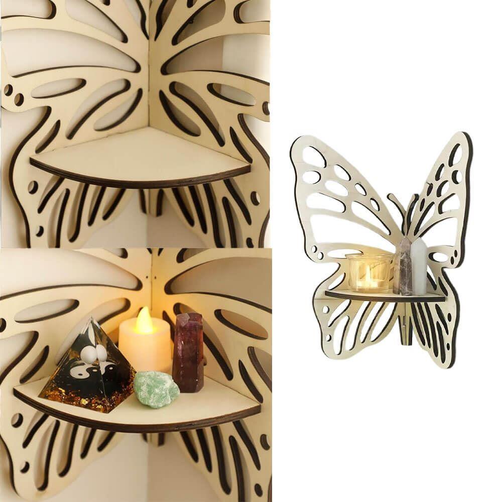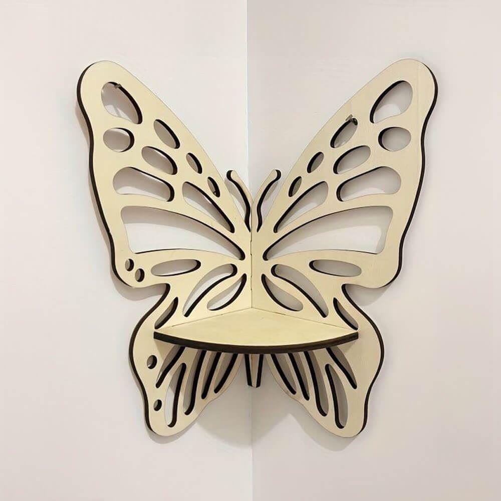 Perfektní volba pro jakýkoli interiér Praktické řešení pro nevyužité rohy Nevšední design poličky ve tvaru motýla Ideální na drobnosti