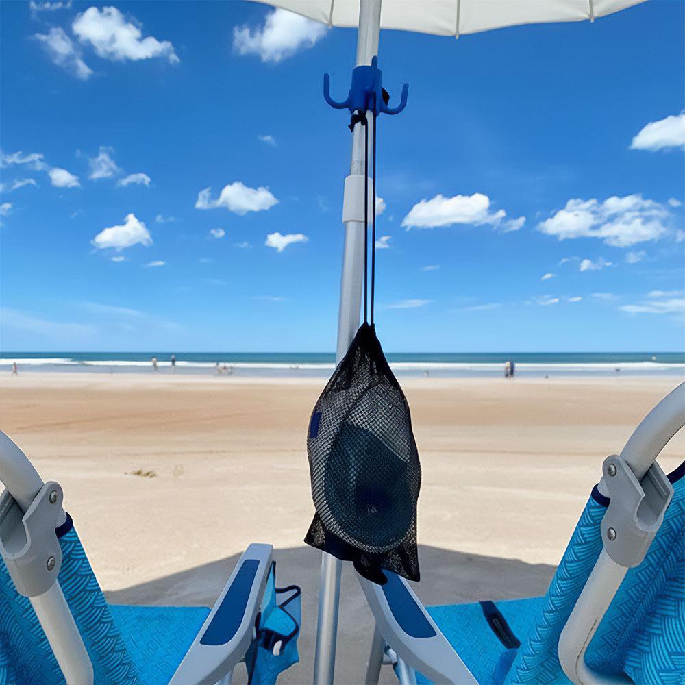 Nasazuje se na tyč slunečníku a vytvoří praktický „věšák“ u lehátka Skvěle se hodí na pláž, k bazénu i na zahradu Udrží ručníky, tašky i brýle mimo zem, čisté a vždy po ruce Pomáhá udržet pořádek a rychle najít vše, co právě potřebujete