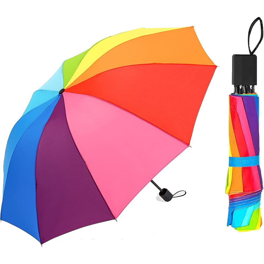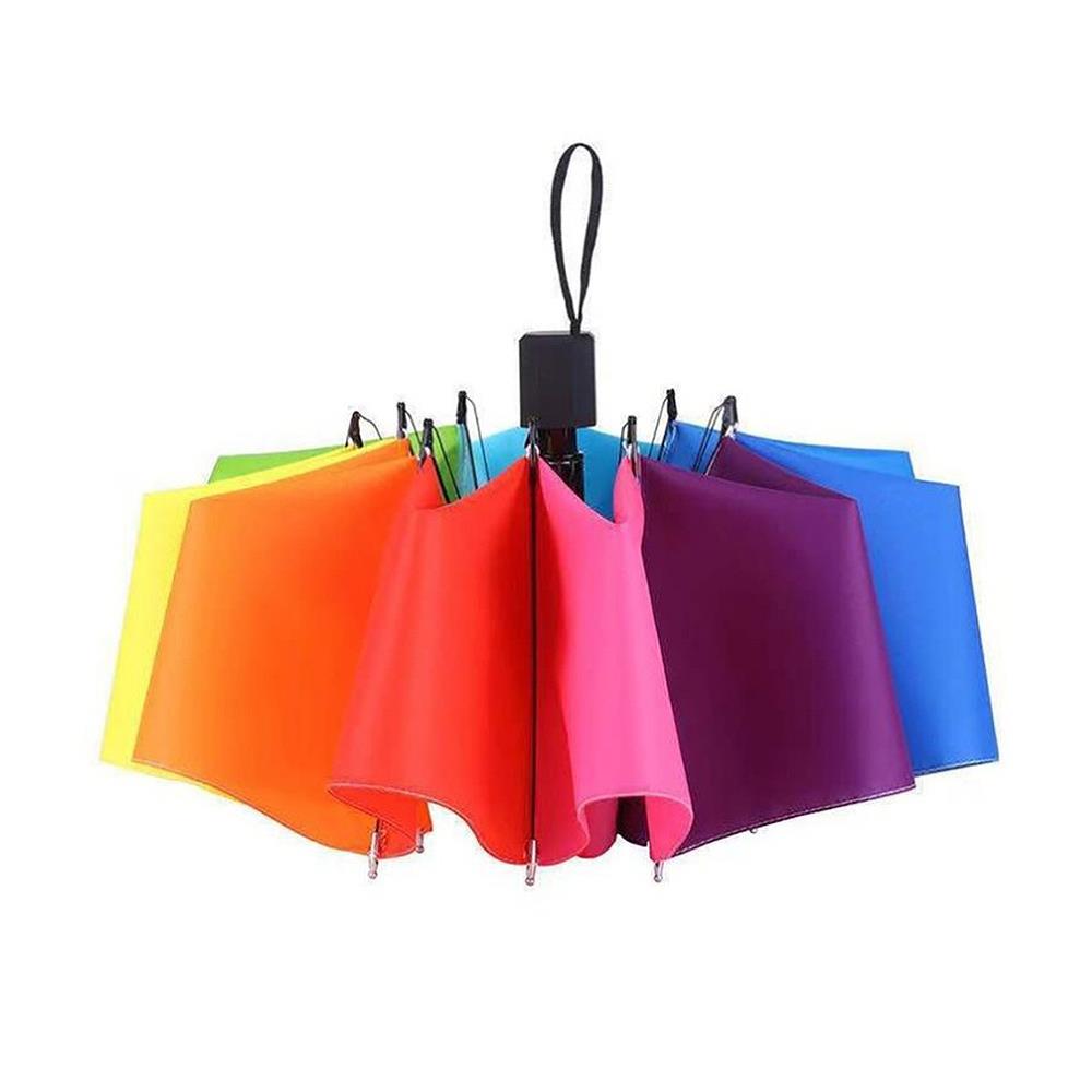Vneste barevnou radost do každého zamračeného dne s tímto pestrým duhovým deštníkem!