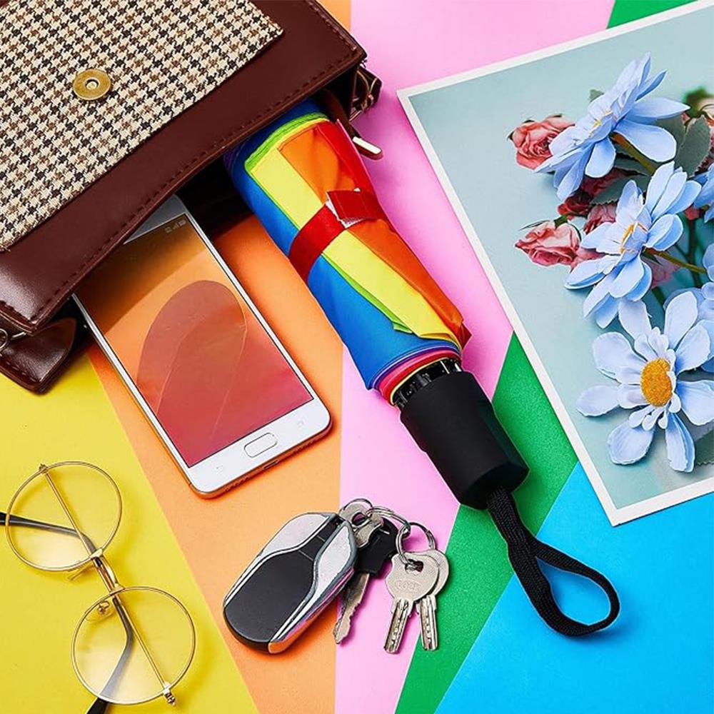 Vneste do deštivých dnů pořádnou dávku barev s duhovým skládacím deštníkem! Jeho pestrobarevný vzhled vám okamžitě zlepší náladu a promění i to nejšedivější ráno v optimistický zážitek. Díky skladné konstrukci se pohodlně vejde do kabelky či batohu, takže ho budete mít vždy při sobě.Ať už vyrážíte do práce, školy nebo na procházku, s tímto stylovým deštníkem určitě neuniknete pozornosti a budete zářit za každého počasí!