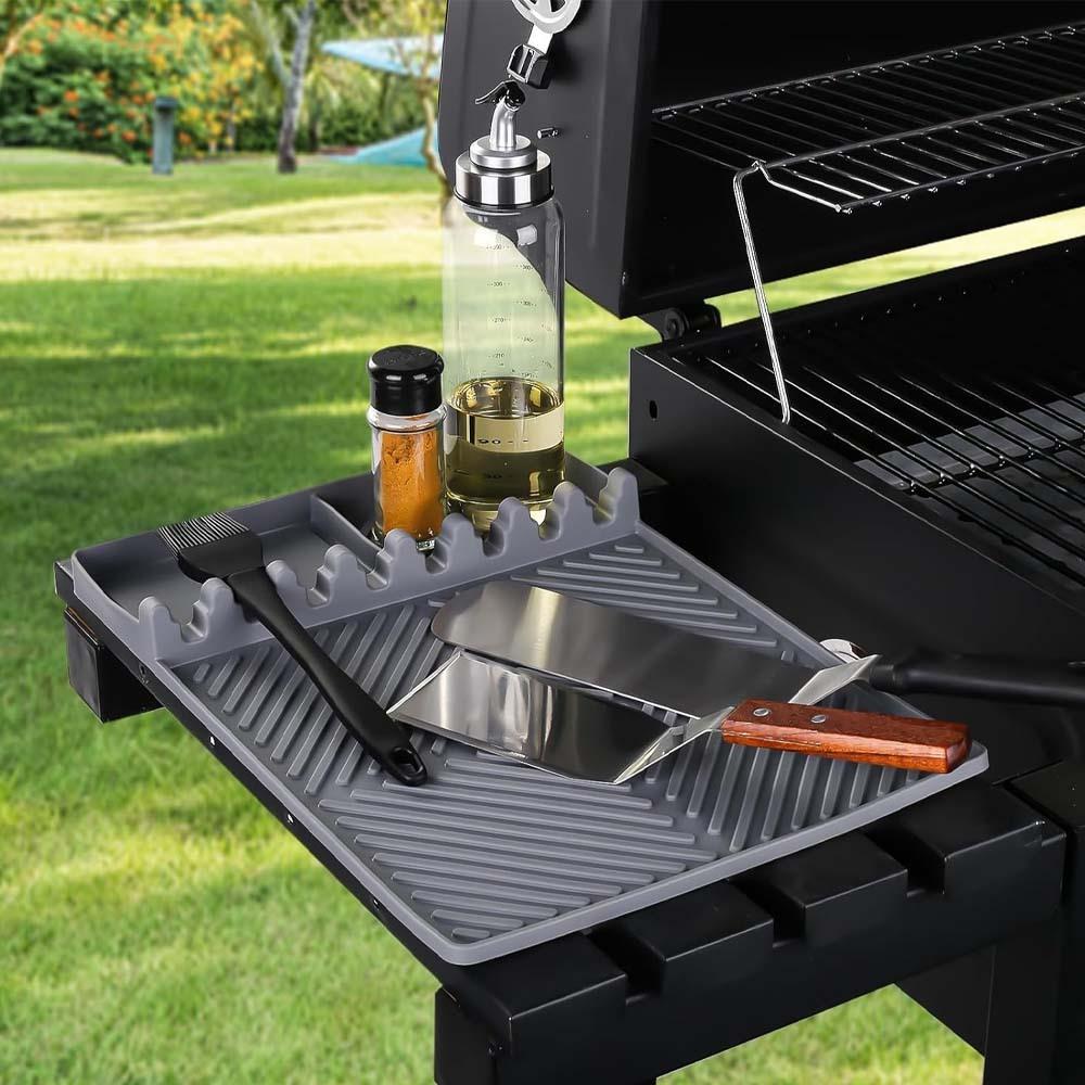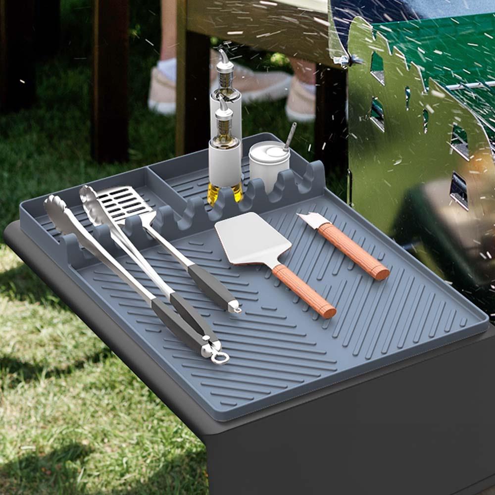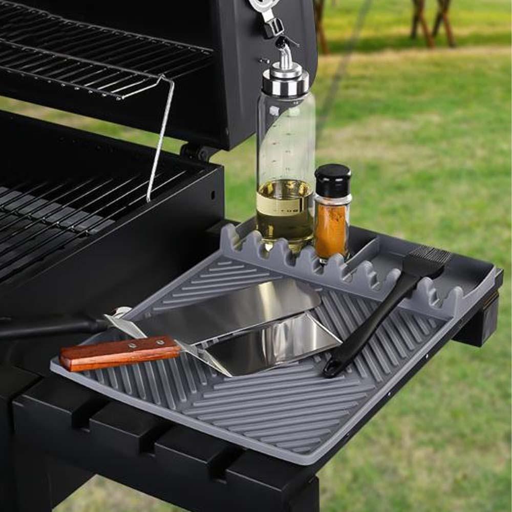 Při grilování je důležité mít vše přehledně uspořádané a snadno dostupné. Tato silikonová podložka nabízí dostatek prostoru pro kleště, obracečky i další pomůcky. Speciální přihrádky umožňují uložit oleje nebo koření a mít je přímo po ruce. Nemusíte tak neustále odbíhat pro potřebné věci. Vše máte připravené přesně tam, kde to potřebujete.