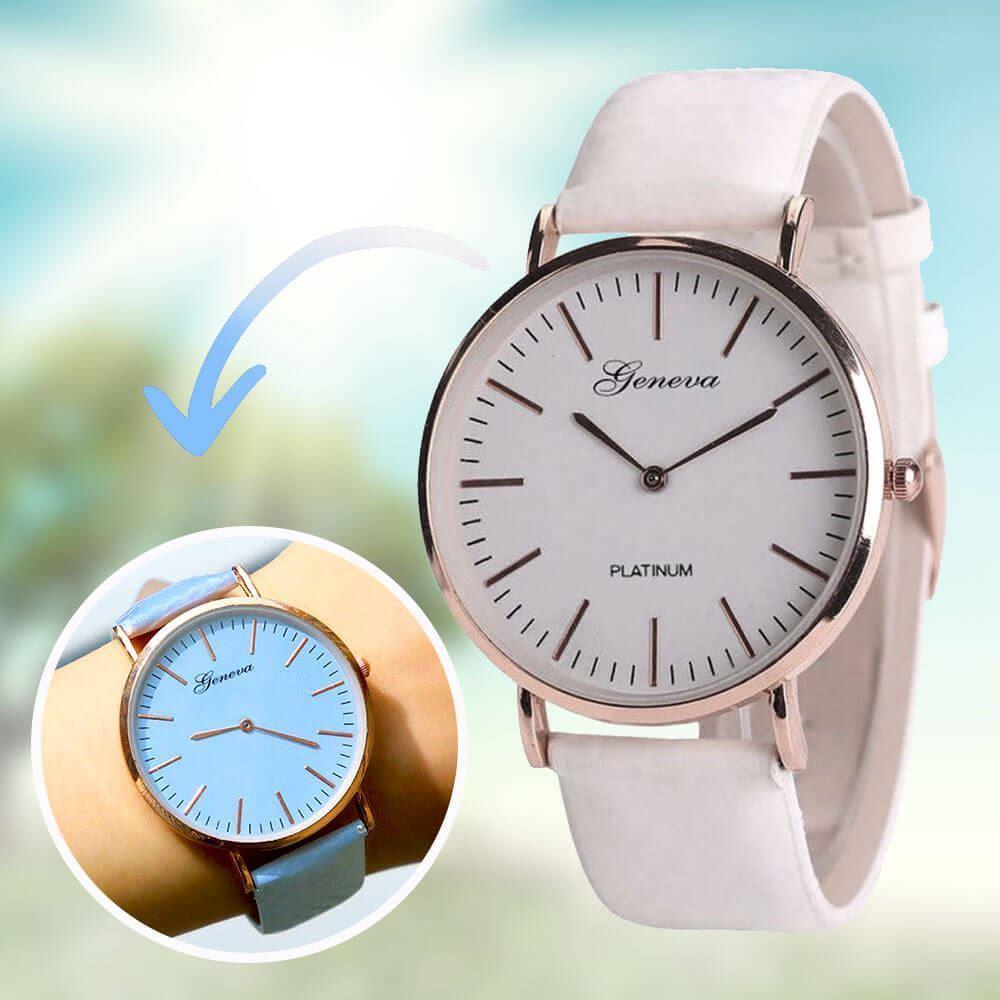 Tyto krásné hodinky dostanou každou ženu! Nejen, že mají příjemné pastelové barvy náramku, ale také mění barvu náramku na slunci. Díky tomu se jen tak neokoukají.