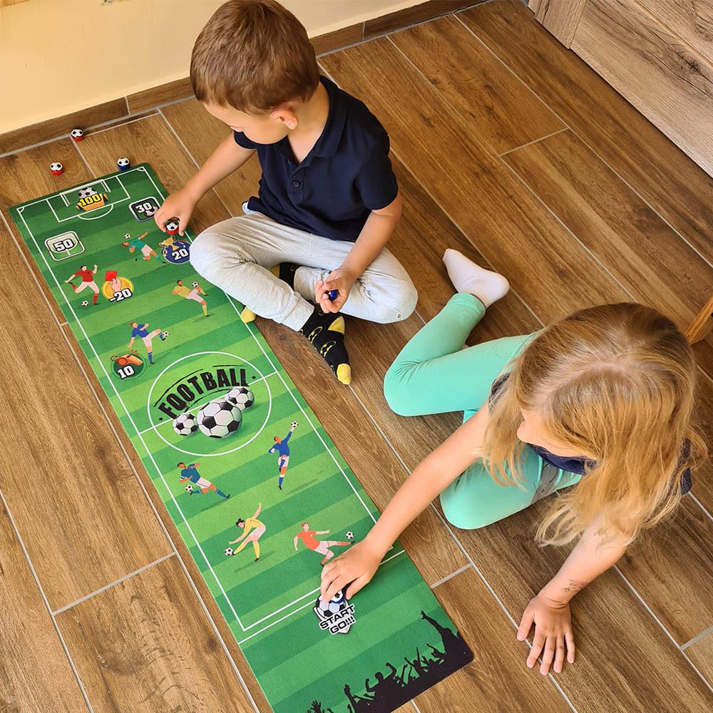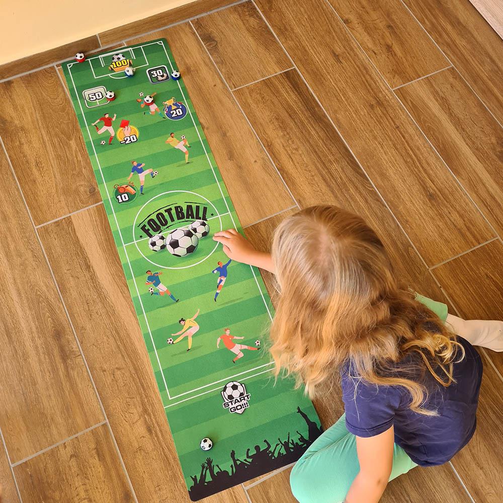 Tato zábavná herní podložka přinese do jakékoli místnosti vzrušující atmosféru. Děti si vyzkoušejí své střelecké schopnosti, nasbírají body a užijí si zábavu s touto jednoduchou, ale návykovou hrou. Stačí rozložit podložku, připravit "puky" a strefovat se do bodových zón. Díky měkkému materiálu je podložka snadno skladovatelná a lehce přenosná, což umožňuje její použití na dovolené, výletech nebo u přátel. Vyzkoušejte hru připomínající curling na dětské párty nebo během prázdninového pobytu. Kdo z vás ukáže, že má nejlepší "tah na branku" a nasbírá nejvíce bodů?