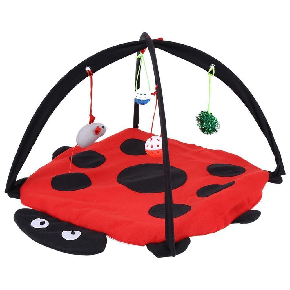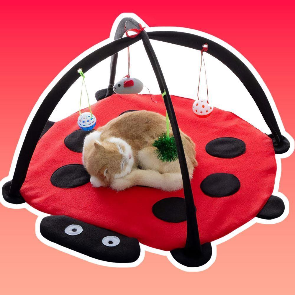 Kočky jsou velmi hravé a málokterý podnět je nechá chladnými. Hrací podložka poskytne vaší kočce skvělou zábavu na dlouhé hodiny. Na konstrukci podložky jsou zavěšené hračky a balonky s rolničkami, se kterými si kočka může vyhrát. Podložka je navíc vyrobena ve tvaru připomínajícím berušku, takže bude skvěle vypadat v každém interiéru.