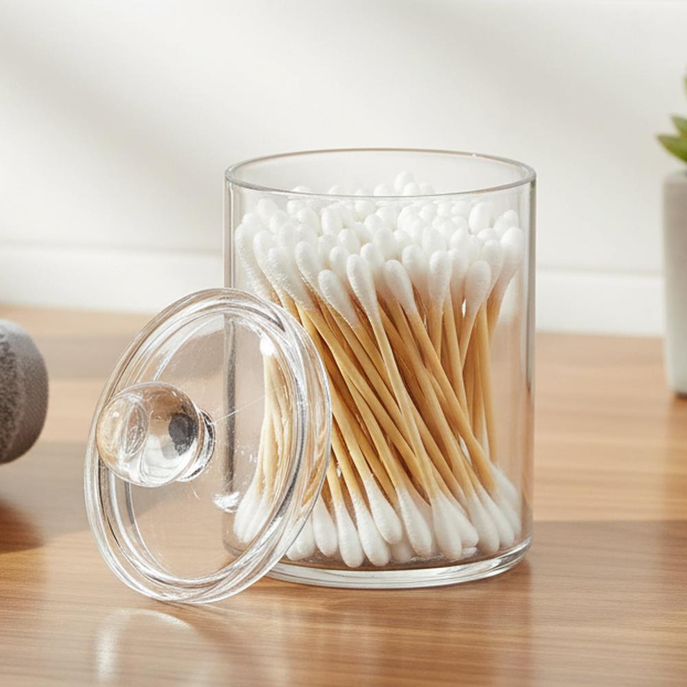 Dopřejte své koupelně styl a pořádek s touto praktickou dózou s víčkem. Skvělá pro skladování vatových tamponů, odličovacích ubrousků, malých šperků nebo jiných kosmetických drobnůstek. Díky průhlednému designu snadno vidíte, co je uvnitř, a rychle najdete, co potřebujete.