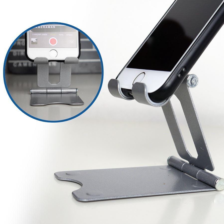 Kovový stojánek na mobil je praktický pomocník pro každého, kdo chce mít telefon stále na očích a zároveň pohodlně pracovat nebo odpočívat. Skvěle se hodí na pracovní stůl do kanceláře i domů – ať už potřebujete rychle kontrolovat notifikace, vyřizovat hovory nebo mít telefon po ruce při práci.