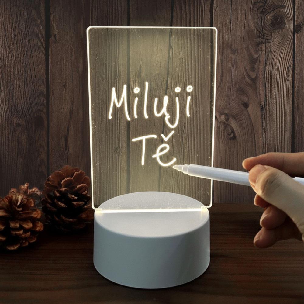 Vneste do své domácnosti nejen světlo, ale i originalitu se stolní lampičkou na vzkazy. Místo obyčejných lístečků či zpráv na lednici vám tato chytrá dekorace umožní jednoduše napsat jakýkoliv vzkaz přiloženým fixem přímo na lampičku – postačí ji rozsvítit a váš text krásně vynikne.