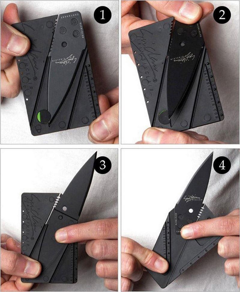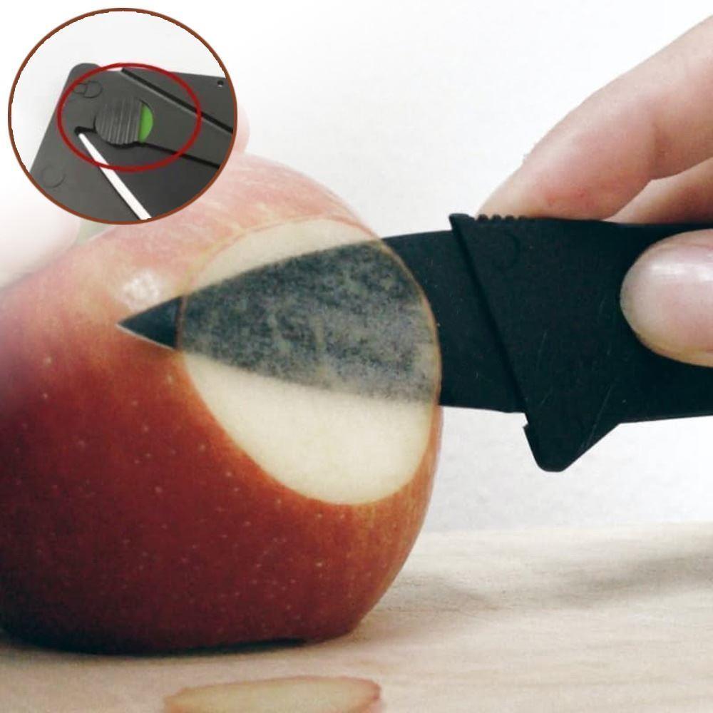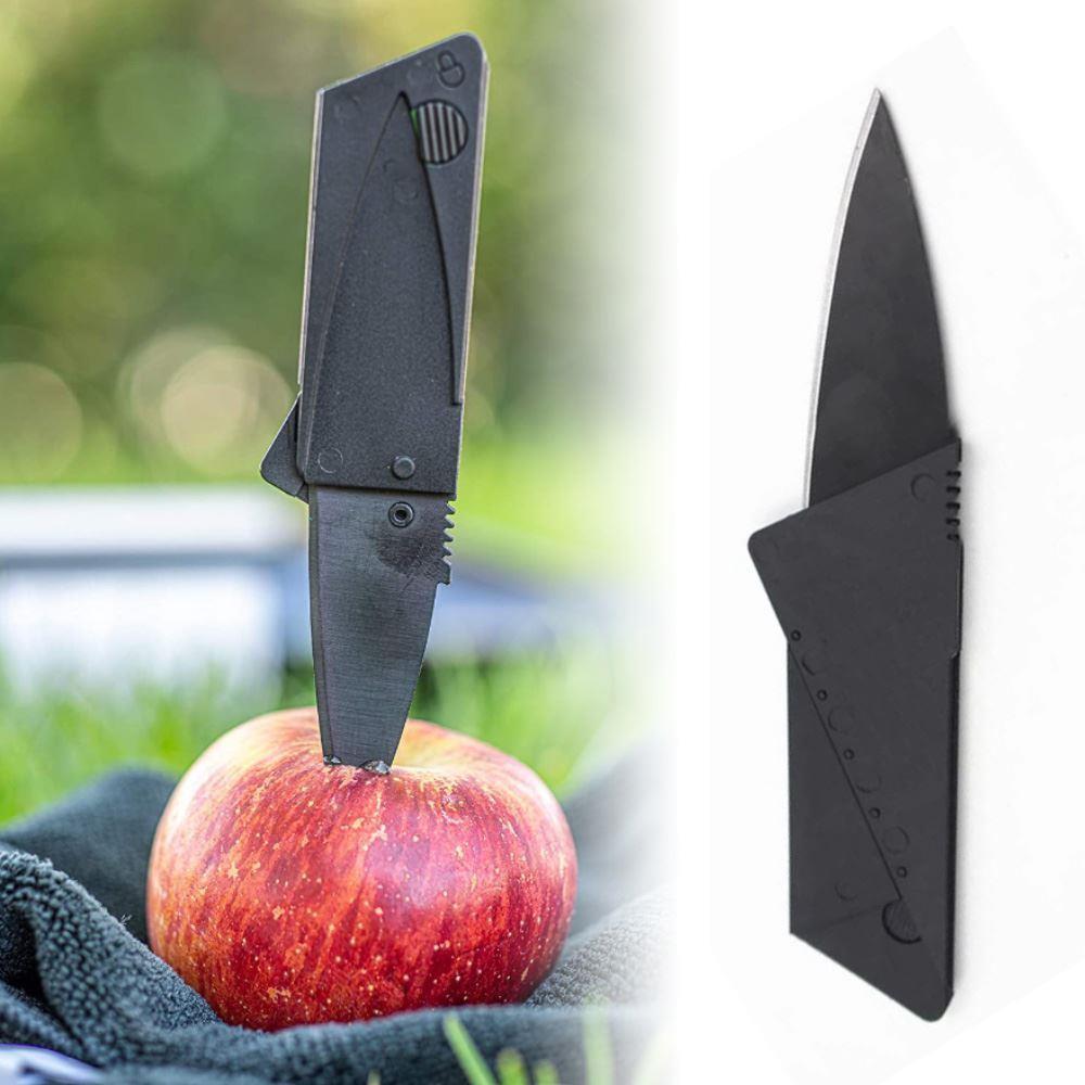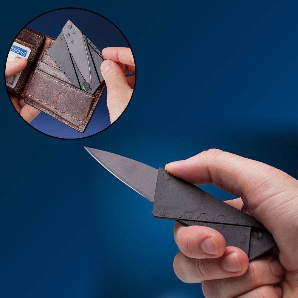 Chodíte často do přírody, kde potřebujete nůž například na sbírání hub, ale nechce se vám ho neustále tahat s sebou, protože na ně nechodíte účelně, ale máte na ně prostě štěstí? Jdete si prostě jen tak na procházku do lesa a ejhle houby rostou přímo před vámi, ale bohužel je tam musíte nechat, protože u sebe nemáte nůž? Nebo chodíte rádi tábořit, ale nemáte tolik místa v báglu, abyste si do něj vzali ostrý nůž, navíc se bojíte, že při prudkém pohybu může nůž propíchnout ostatní věci a tak složitě nůž balíte do několika vrstev ochrany, aby vám neponičil věci? Nyní už si s těmito problémy nemusíte lámat hlavu!Kreditní nůž je nůž ve tvaru kreditní karty, který lze poskládat tak, abyste jej mohli používat jako klasický nůž na krájení. Jeho velkou výhodou je, že pokud jej nepotřebujete, rozložíte ho, jeho základní tvar je klasická „kreditní karta“, kterou můžete nosit neustále u sebe v peněžence. Na kartě se nachází pojistka, díky které se karta nedá poskládat.