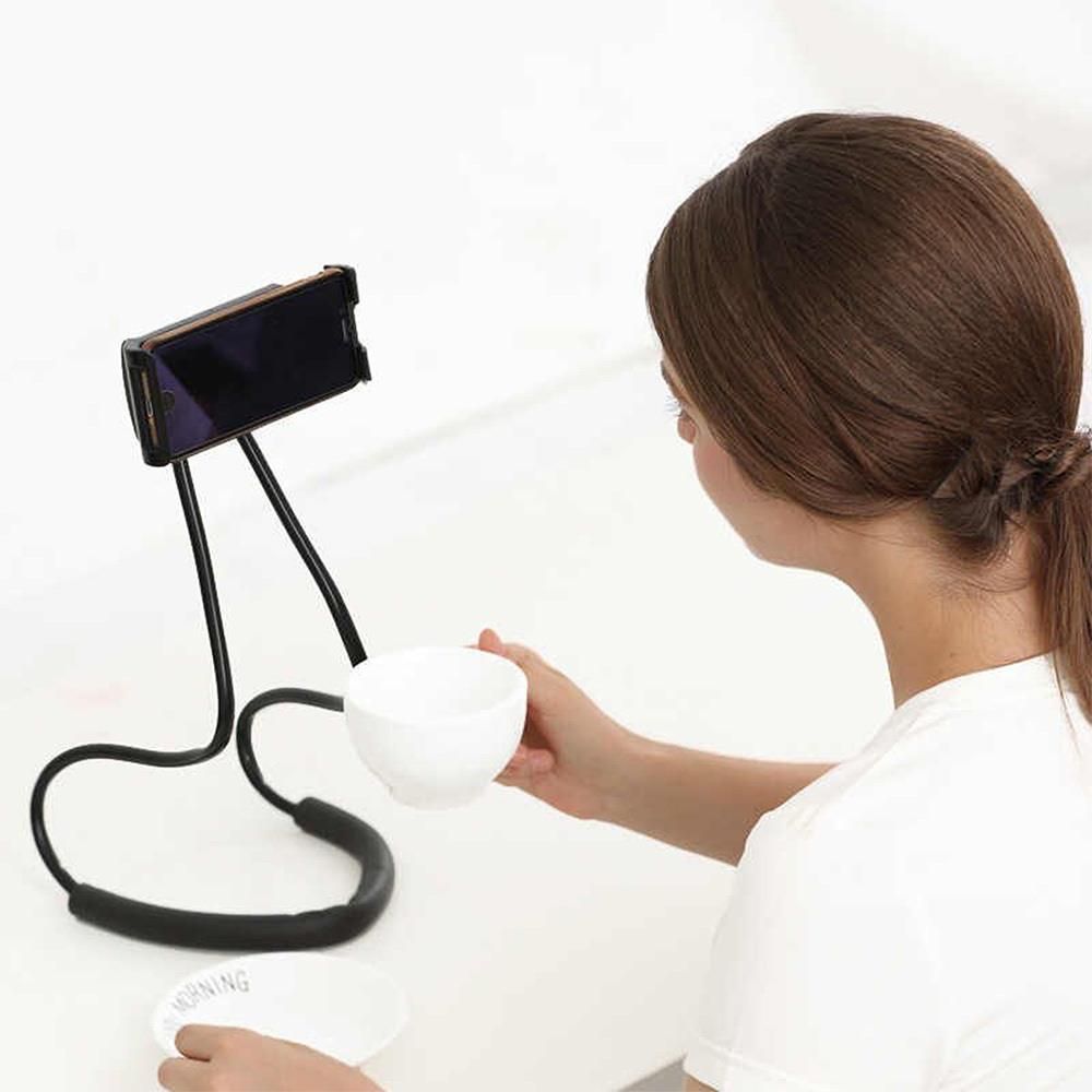 Tento držák nandáte na krk, a pak už se nemusíte o nic starat! Doslova vás to zbaví rukou! Pokud budete chtít sledovat filmy, videa či číst online, líný držák se postará o to, že nemusíte používat při těchto úkonech ruce. Velké pozitivum je, že držák je v místě krku polstrovaný, takže vás do krku nebude nic řezat či tlačit. Držák dále můžete různě ohnout do požadované pozice dle vaší potřeby. Je různě tvarovatelný a nastavitelný.