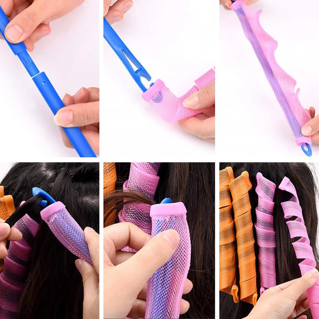 S magickými natáčkami si jednoduše vykouzlíte krásné lokny. Stačí si umýt vlasy, dát do nich trochu tužidla a aplikovat natáčky. Po uschnutí nebo vysušení vlasů fénem, natáčky sundáte a budete mít krásně kudrnatou hřívu. Natáčky na vlasy snadno aplikujete pomocí háčku, kterým vlasy protáhnete do natáčky. Natáčky jsou vyrobeny z flexibilního materiálu, který se po protažení pramenu natáčkou automaticky přizpůsobí (zkroutí) do tvaru natáčky. Nemusíte tedy složitě vlasy točit jako na klasické natáčky. Používání natáček je velmi jednoduché a zvládne to opravdu každý.
