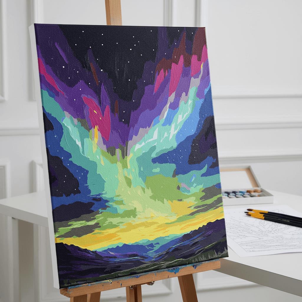 Obrázek z Malování podle čísel, vypnuté plátno na rám - polární záře