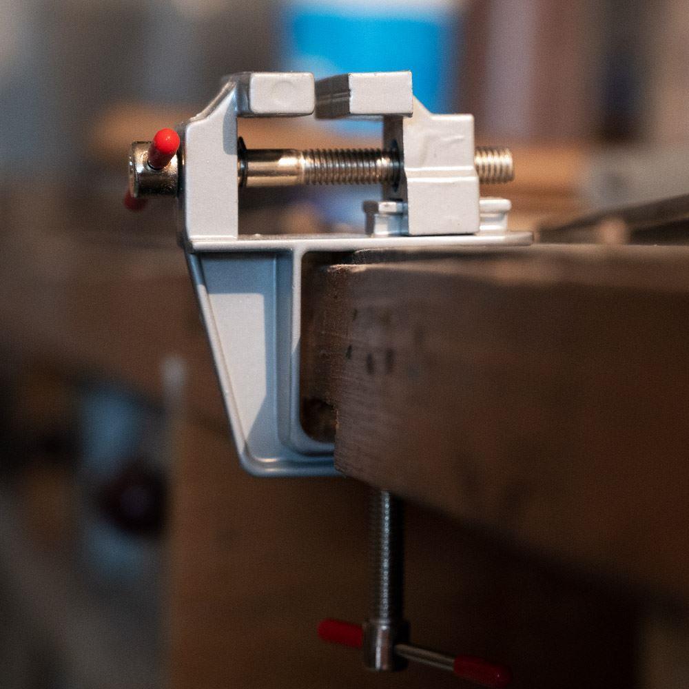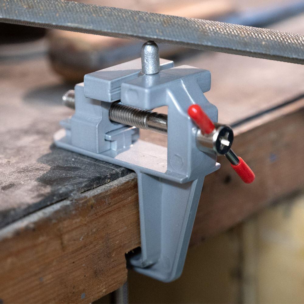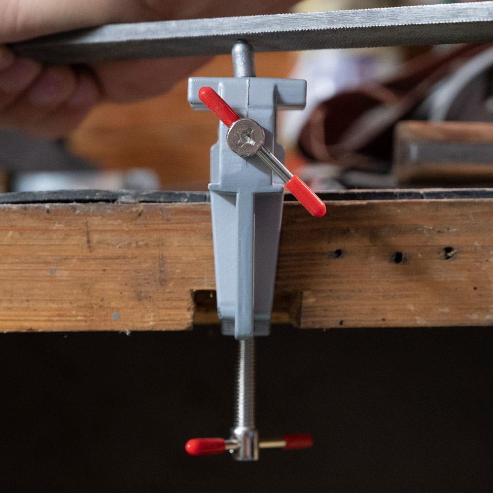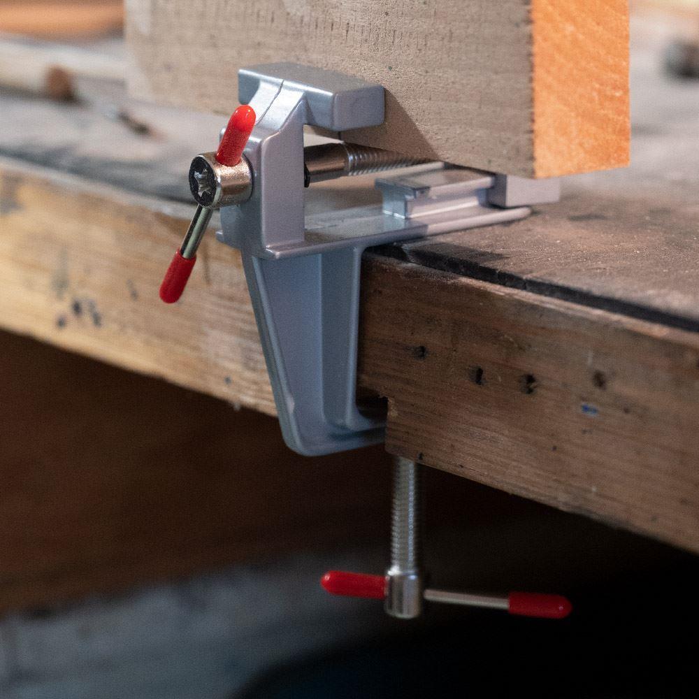 Potřebujete malé kousky zbrousit, udělat do nich dírku nebo slepit dvě malá dřívka? Žádný problém! Vložíte je do svěráku a zůstanou pěkně na svém místě. Mini svěrák velmi snadno připevníte k pracovnímu stolu.