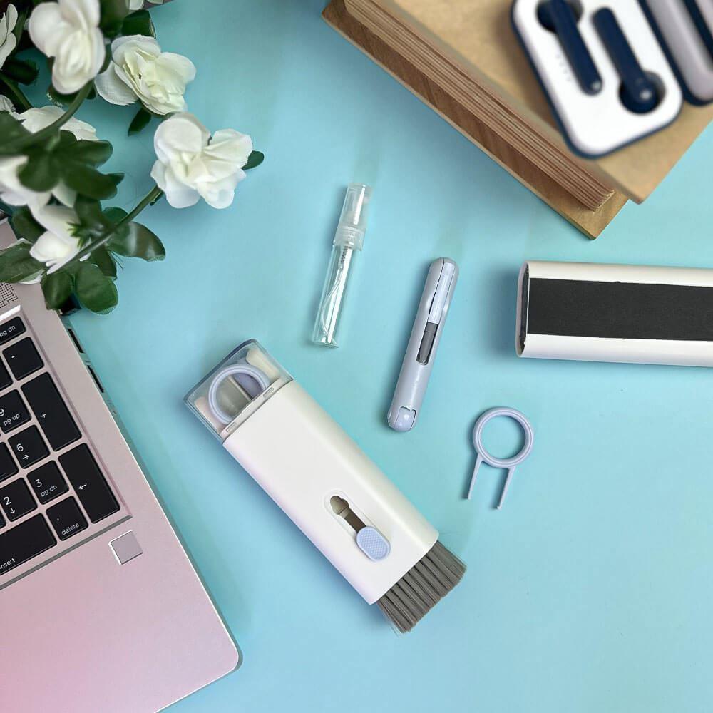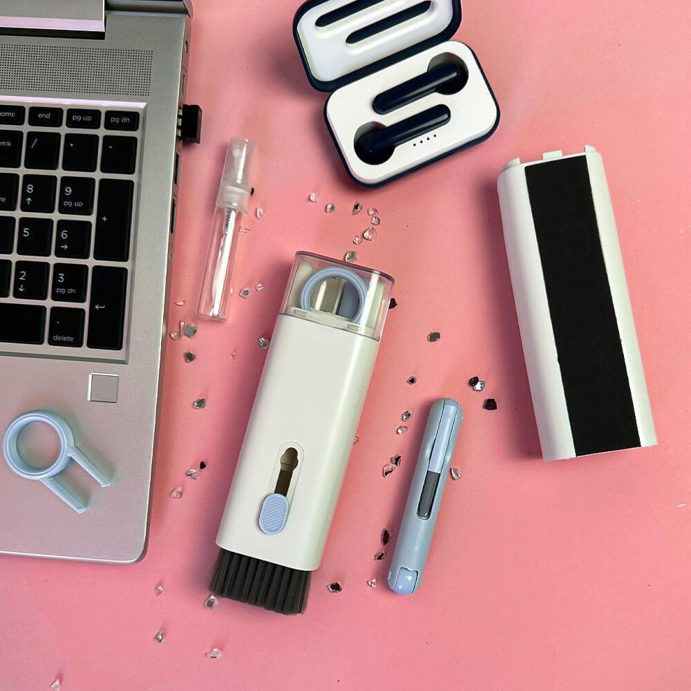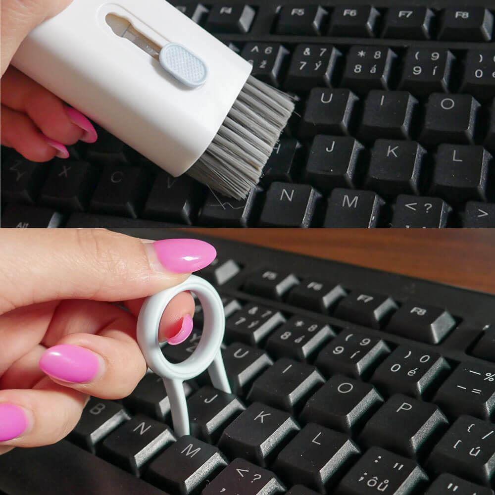 Chcete udržovat čistotu svých zařízení a prodloužit tak jejich životnost? S touto multifunkční sadou 7 v 1 vyčistíte každý kout na klávesnici i pod klávesnicí, pouzdro uvnitř sluchátek, obrazovku telefonu, notebooku či tabletu. Díky svému malému provedení, sadu schováte do batohu, kabelky nebo kapsy, tudíž ji budete mít vždy u sebe. V sadě najdete spoustu vychytávek jako kartáč na čištění klávesnice, čistič displeje, pomůcku pro sundání tlačítek klávesnice a mnoho dalšího. Jednoduše vychytávka, která by vám neměla chybět, ať už jste muž, nebo žena.