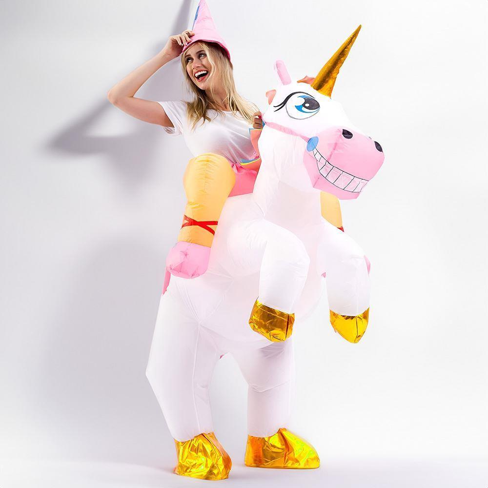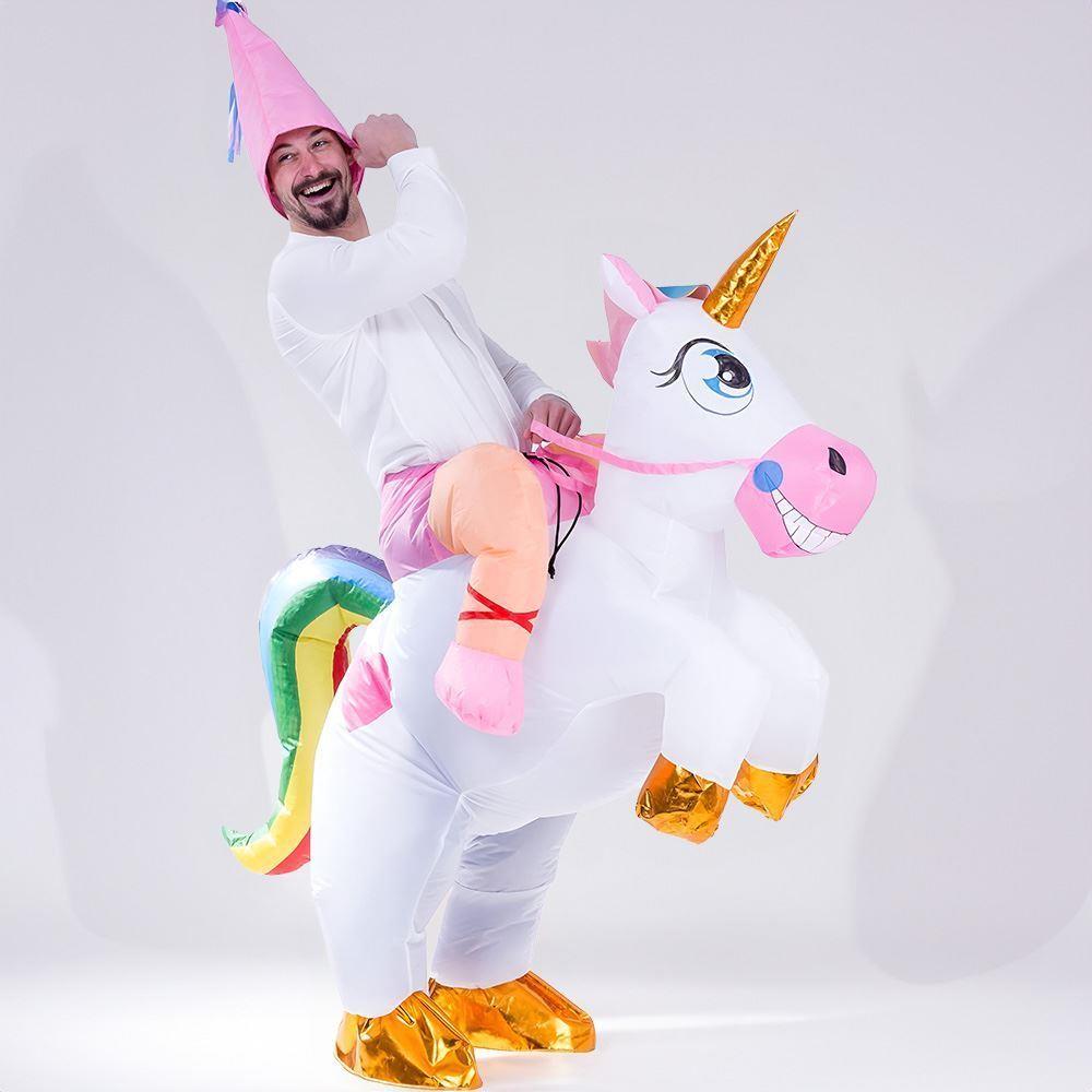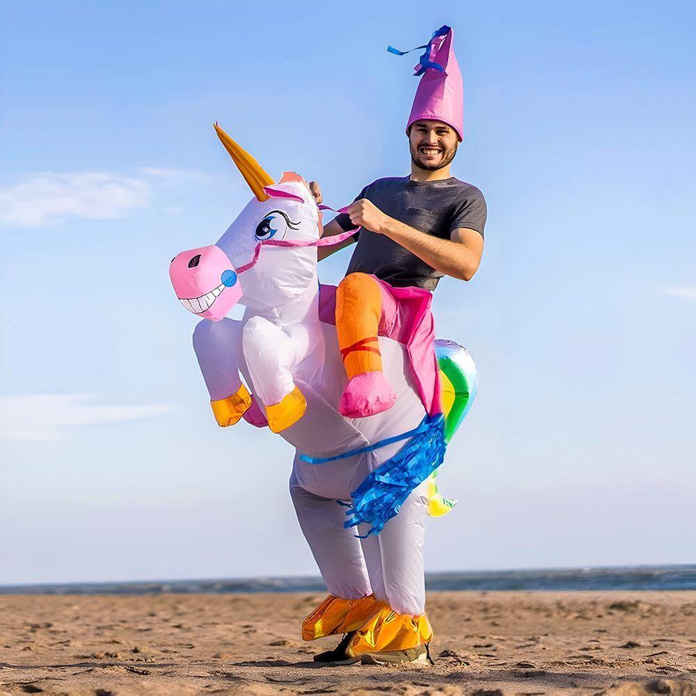 Kostým, který oceníte zejména na dětské párty, na Halloweenu nebo karnevalu. Kostým je vybavený větrákem, který zajistí jeho snadné nafouknutí. Komfortní nošení a nasazení zajišťuje gumička v pasu a dostatečně velký otvor pro oblékání. S tímto kostýmem jednorožce okouzlíte na první pohled! Ilustrační video: