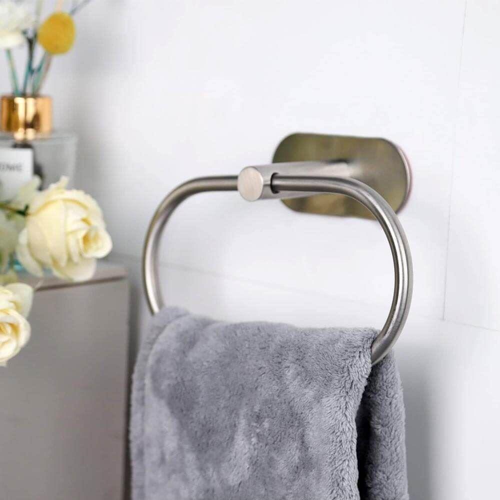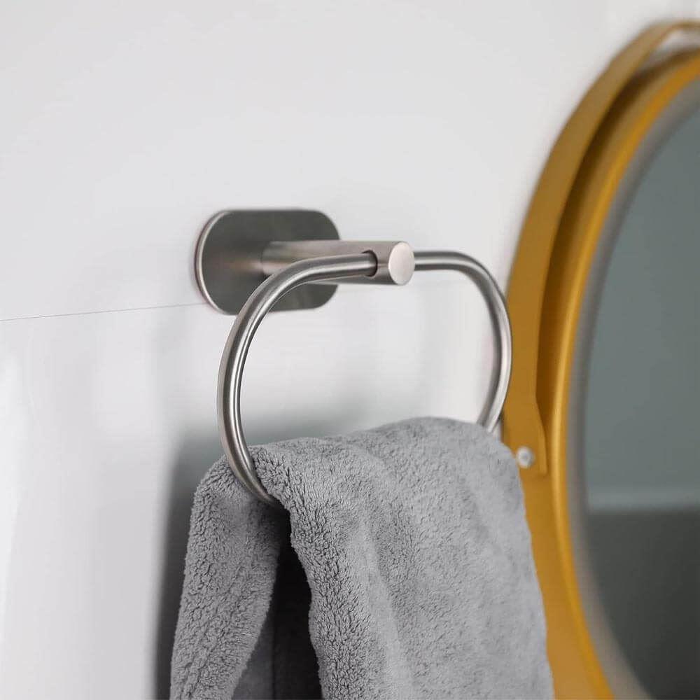 Držák na ručníky je věc, bez které se neobejde žádná koupelna. Každý potřebuje ručník s držákem při každodenním umývání rukou či obličeje ráno při vstávání. Máme pro vás stylovku! Strčte obyčejný háček na ručníky do kapsy a nalepte si modernější verzi držáku. Kruhový design se nosí a koupelně sluší! Nejlepší na tom je, že do minuty máte držák nalepený. Zadní strana je samolepicí, takže se jen soustředíte na to, abyste držák nalepili rovně. Nemusíte dělat žádné díry do dlaždiček nebo do zdi. Držák v koupelně pěkně drží a ručník v něm také. Vybírat lze ze dvou barevných variant.