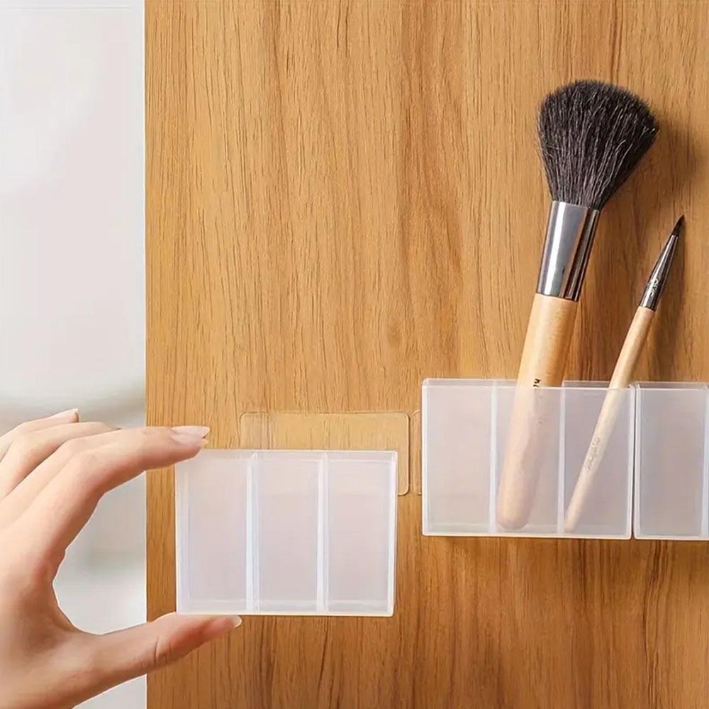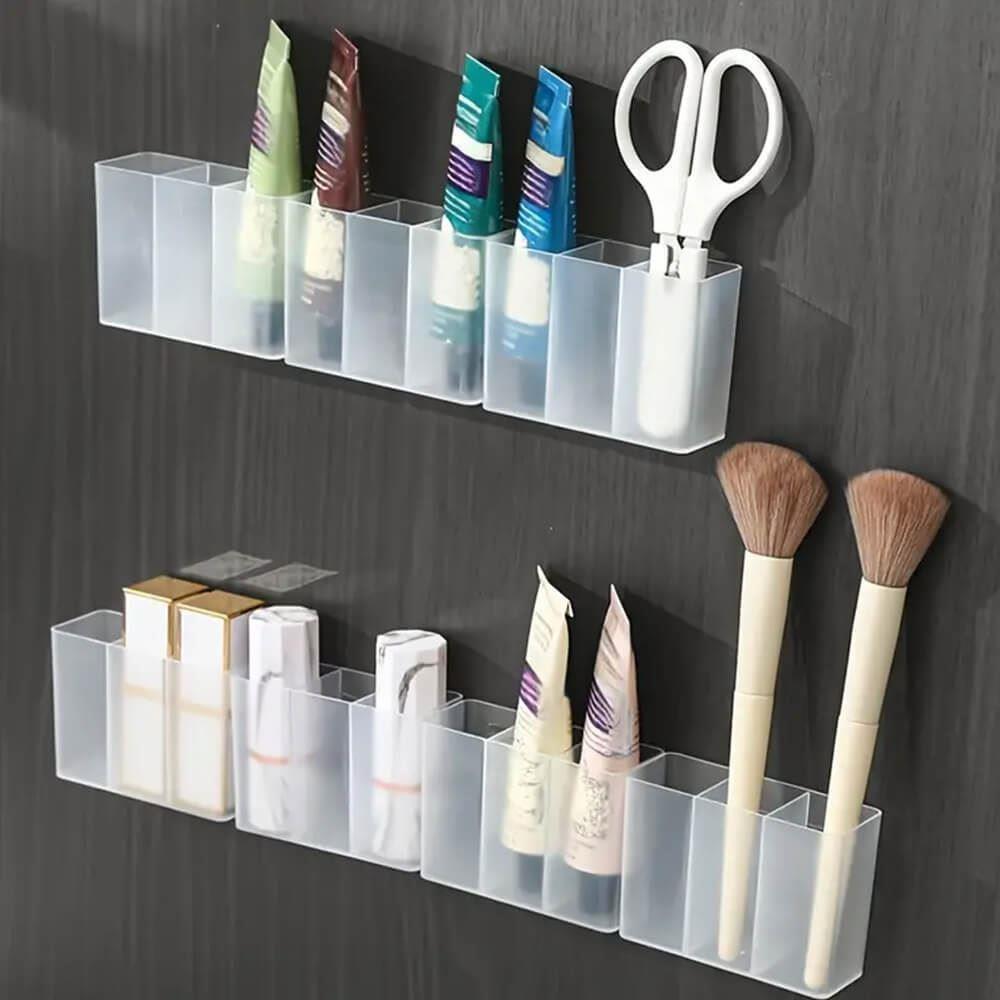 Průhledné nalepovací přihrádky uvítají zejména ženy. Každá žena ocení mít oblíbené rtěnky a štětce po ruce a hezky uspořádané. Praktická trojpřihrádka poslouží na drobnou kosmetiku či kosmetické potřeby. Do úložných boxíků umístíte rtěnky, pinzety, vatové tyčinky, štětce atd. Organizér využijete nejen v koupelně, ale hodit se vám bude i do kanceláře na psací potřeby.