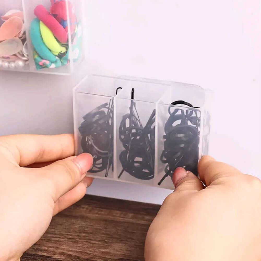 Trojitý organizér pro kosmetiku a sponky Umístěte do skříňky nebo přilepte na zeď Věci snadno dostupné a úhledně uspořádané Pevné připevnění s oboustrannou lepicí páskou