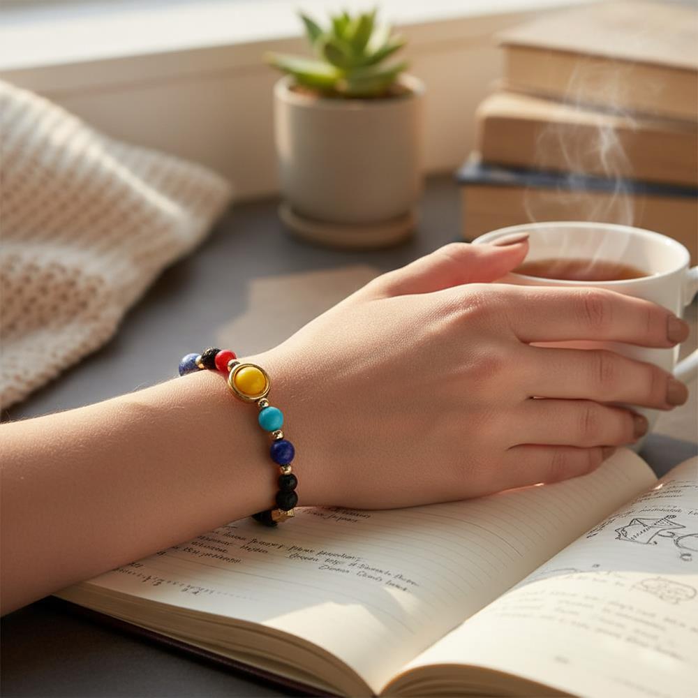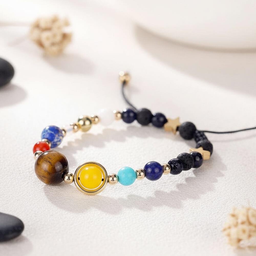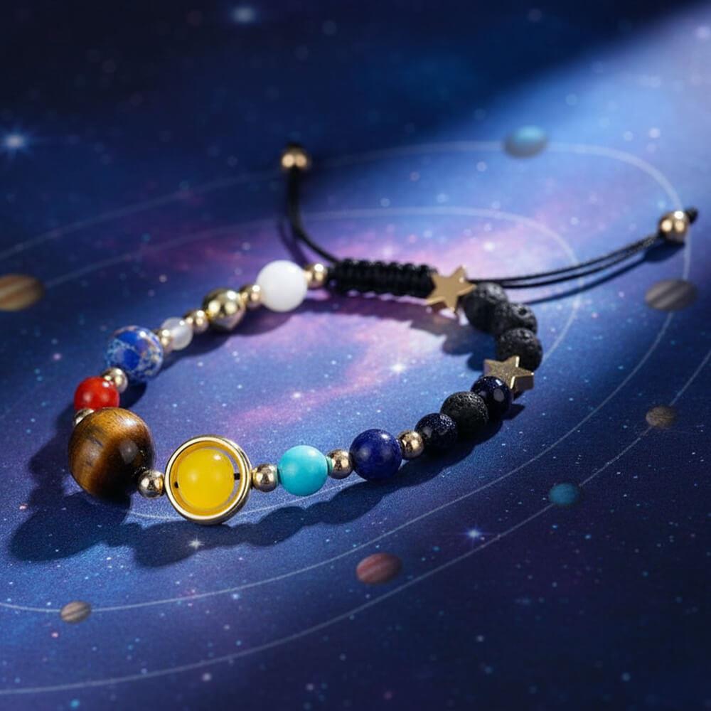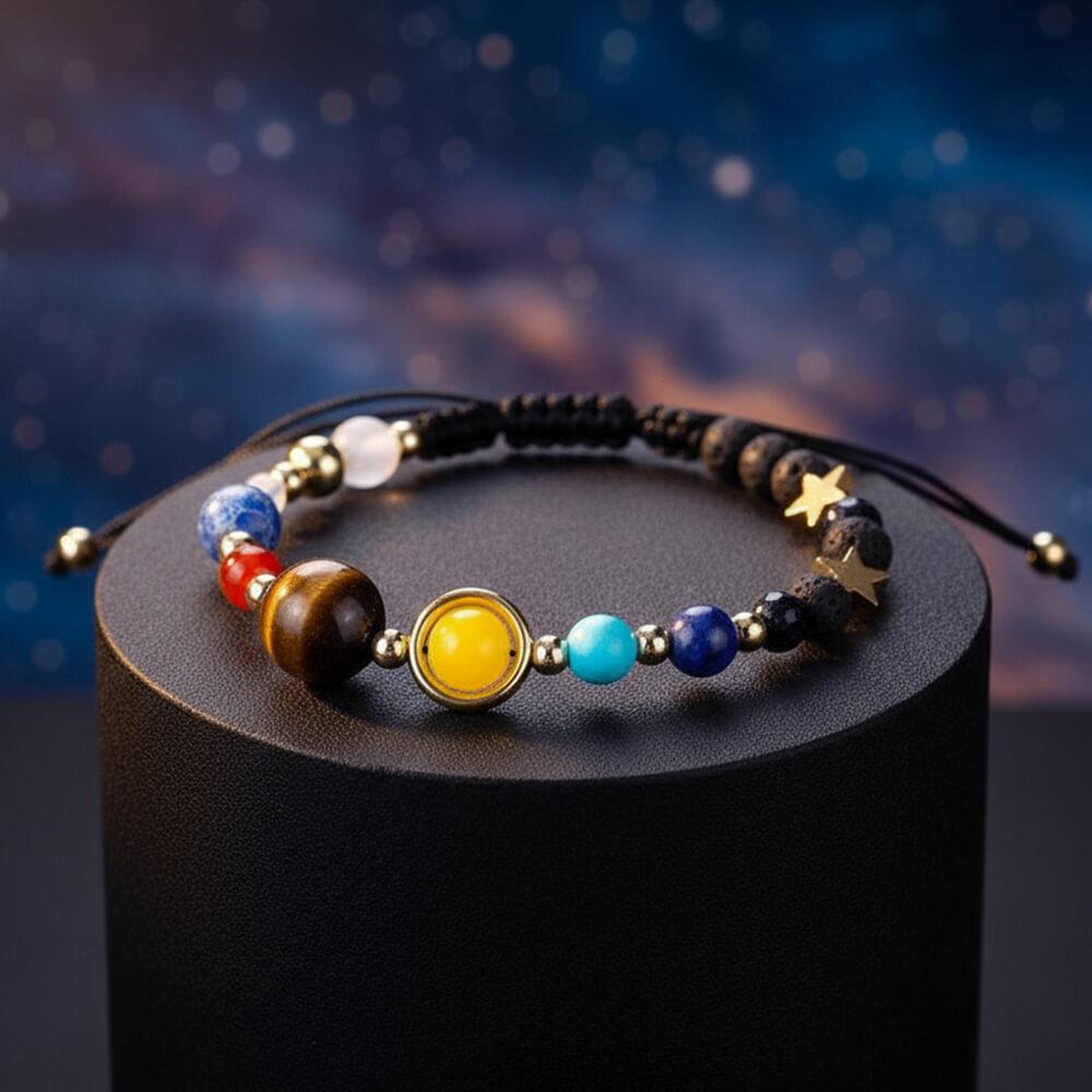 Nejen že se vám tento náramek bude krásně vyjímat na ruce, ale ještě vám ho bude každý obdivovat. Je totiž originální a nápaditý. Sluneční soustava, kterou se může chlubit, dodá náramku šmrnc. Tento krásný náramek s tématikou Vesmíru okouzlí každou ženu – nejen milovnice planet. Velikost lze nastavit podle každé ruky – je tedy univerzální. Šňůrky utáhnete tak, jak je vám to příjemné. Bude to jednoznačně velmi pěkná ozdoba na vaši ruku.
