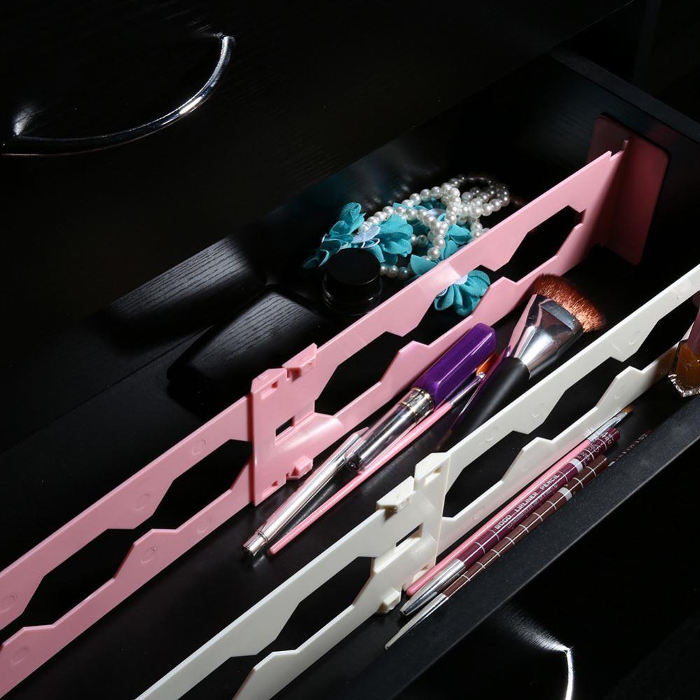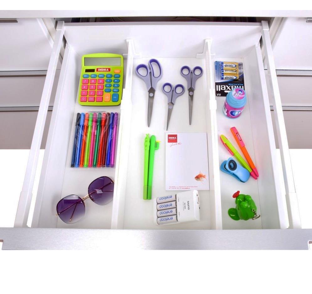Praktický doplněk do každé domácnosti! Tato přepážka udělá v každém šuplíku ten správný pořádek a přehlednost! Díky tomu, že je přepážka nastavitelná se hodí do každého šuplíku. Ve složeném stavu má přepážka délku 32 cm. V úplně rozloženém stavu nabízí až 55 cm. Přepážku lze využít například v šuplíku s kosmetickými pomůckami, v kuchyňských poličkách, v kancelářském stole nebo třeba v šuplíku se spodním prádlem. K instalaci není třeba žádných nástrojů, šroubků nebo kladívka. Přepážku pouze do šuplíku umístěte a nastavte podle šuplíku délku.
