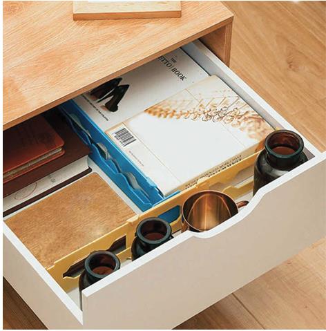 Přepážku lze využít například v šuplíku s kosmetickými pomůckami, v kuchyňských poličkách, v kancelářském stole nebo třeba v šuplíku se spodním prádlem. K instalaci není třeba žádných nástrojů, šroubků nebo kladívka. Přepážku pouze do šuplíku umístěte a nastavte podle šuplíku délku.