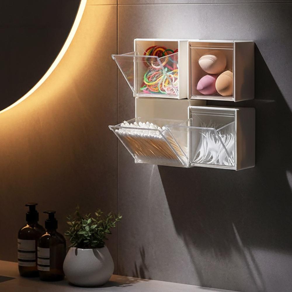 Tento vyklápěcí box je ideální pro ty, kteří si chtějí zavést pořádek. Je navržen pro malé předměty – vatové tyčinky, baterie, šperky, sponky a gumičky do vlasů, náplasti, špendlíky a další. Box se upevní na většinu povrchů jako je zeď, dřevo nebo kachličky. Pořiďte si více boxů a vytvořte si vlastní úložný systém, který udrží vaše malé předměty pohromadě.