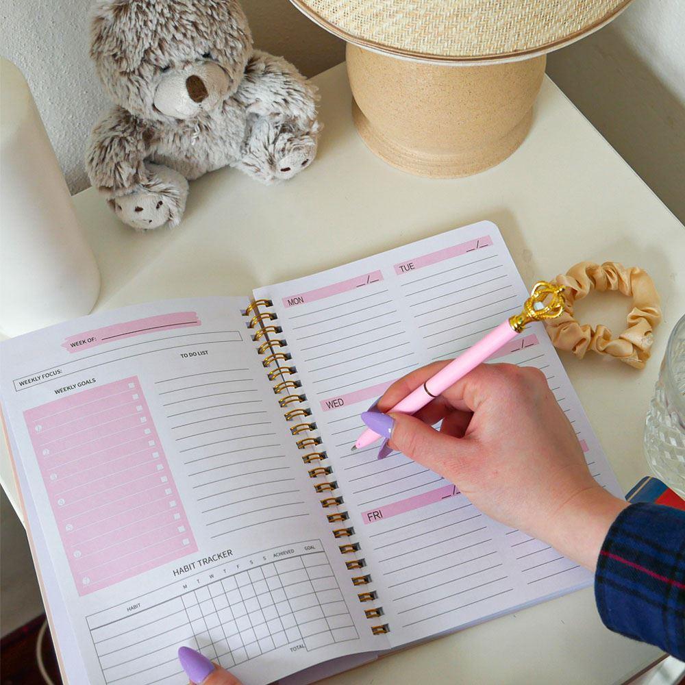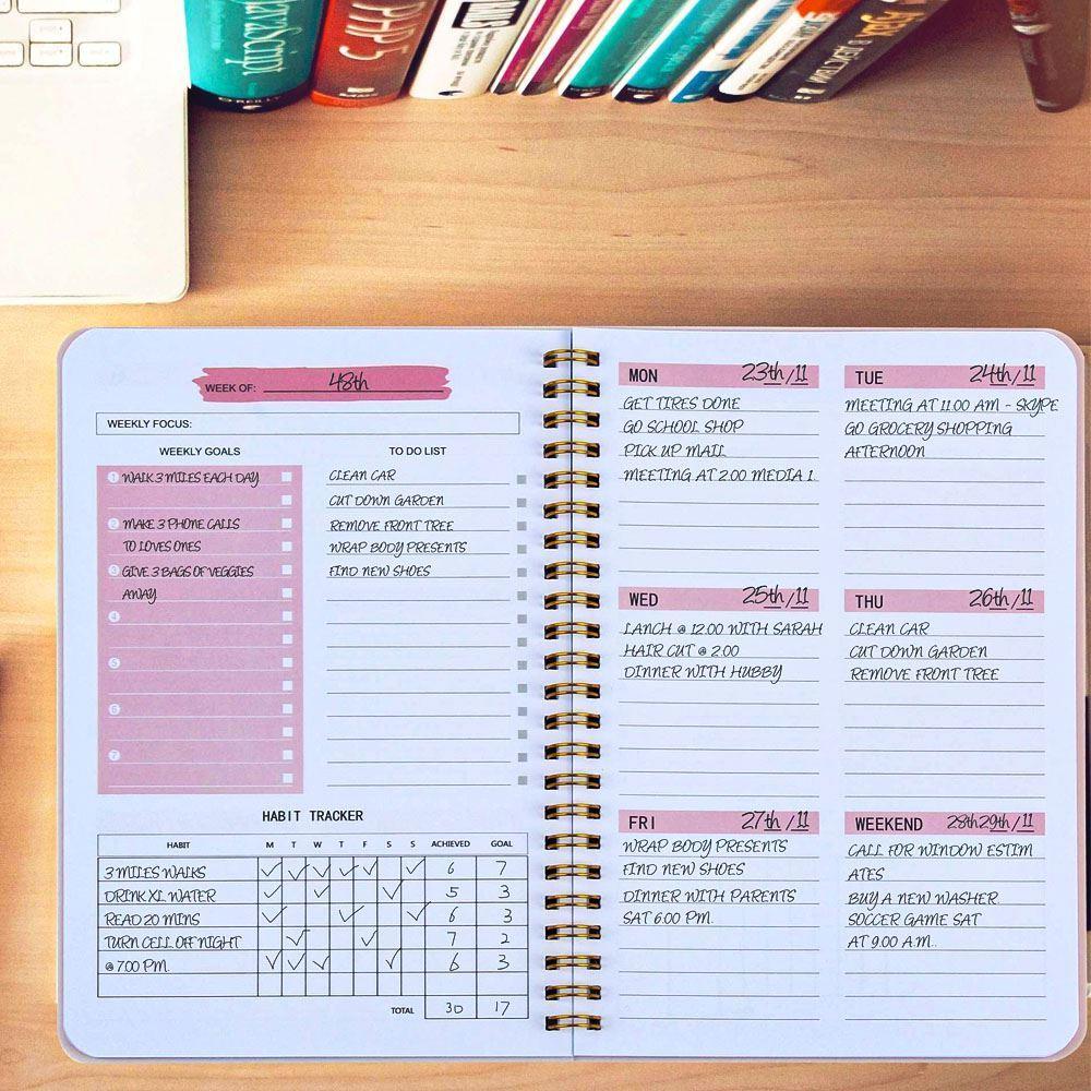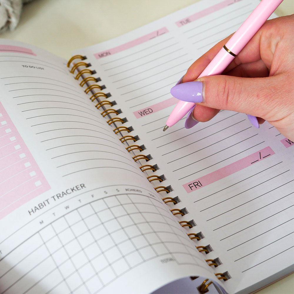 Tento nedatovaný motivační diář vám pomůže k uskutečnění vašich denních a týdenních cílů. Správně vás namotivuje pro daný den a co víc? Budete ho mít stále při ruce a zapisování bude zábava. Po pár dnech se to stane vaší každodenní rutinou. Po dlouhém dni si rádi odškrtnete všechno, co jste za den stihli udělat a budete mít ze sebe skvělý pocit. I kdybyste náhodou vynechali nějaký den, vůbec to nevadí, protože si do diáře můžete napsat datumy a nemusí na sebe navazovat.