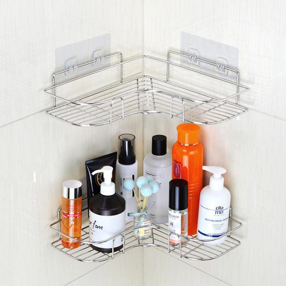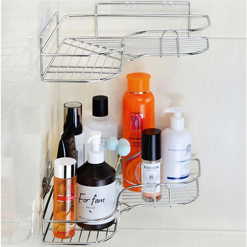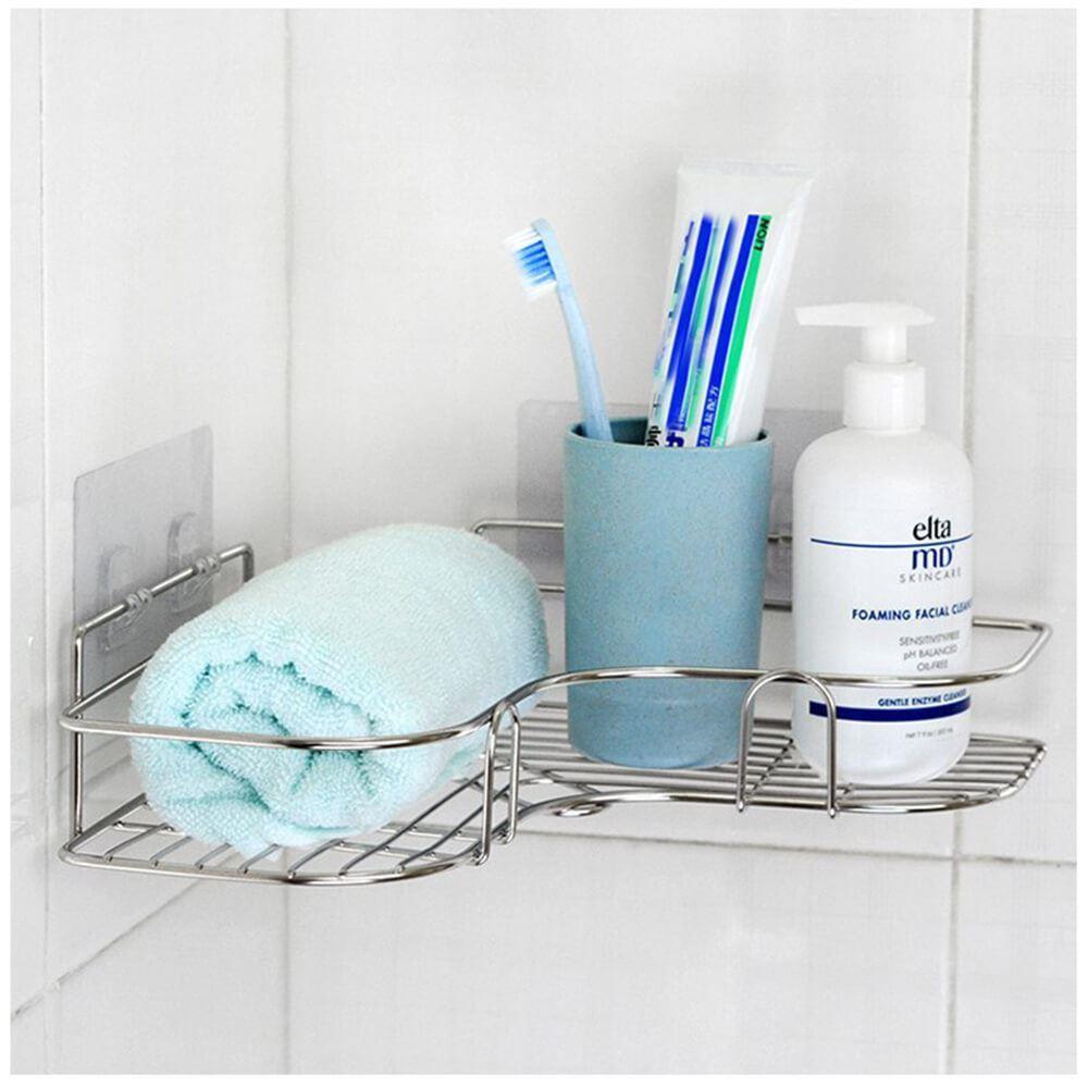 Úložný prostor bez nutnosti vrtání? Tady je! Nerezová rohová polička vám obklady neponičí. Její instalace je opravdu jednoduchá, stačí nalepit a drží jako přibitá. Lepítka aplikujte na suchý, rovný a hladký povrch.Polička je ideální na mýdla, šampony, sprchové gely či krémy. Má moderní nerezový design a tak se hodí do každého interiéru. Díky tomu, že nemá plné dno, se v ní nedrží přebytečná voda.