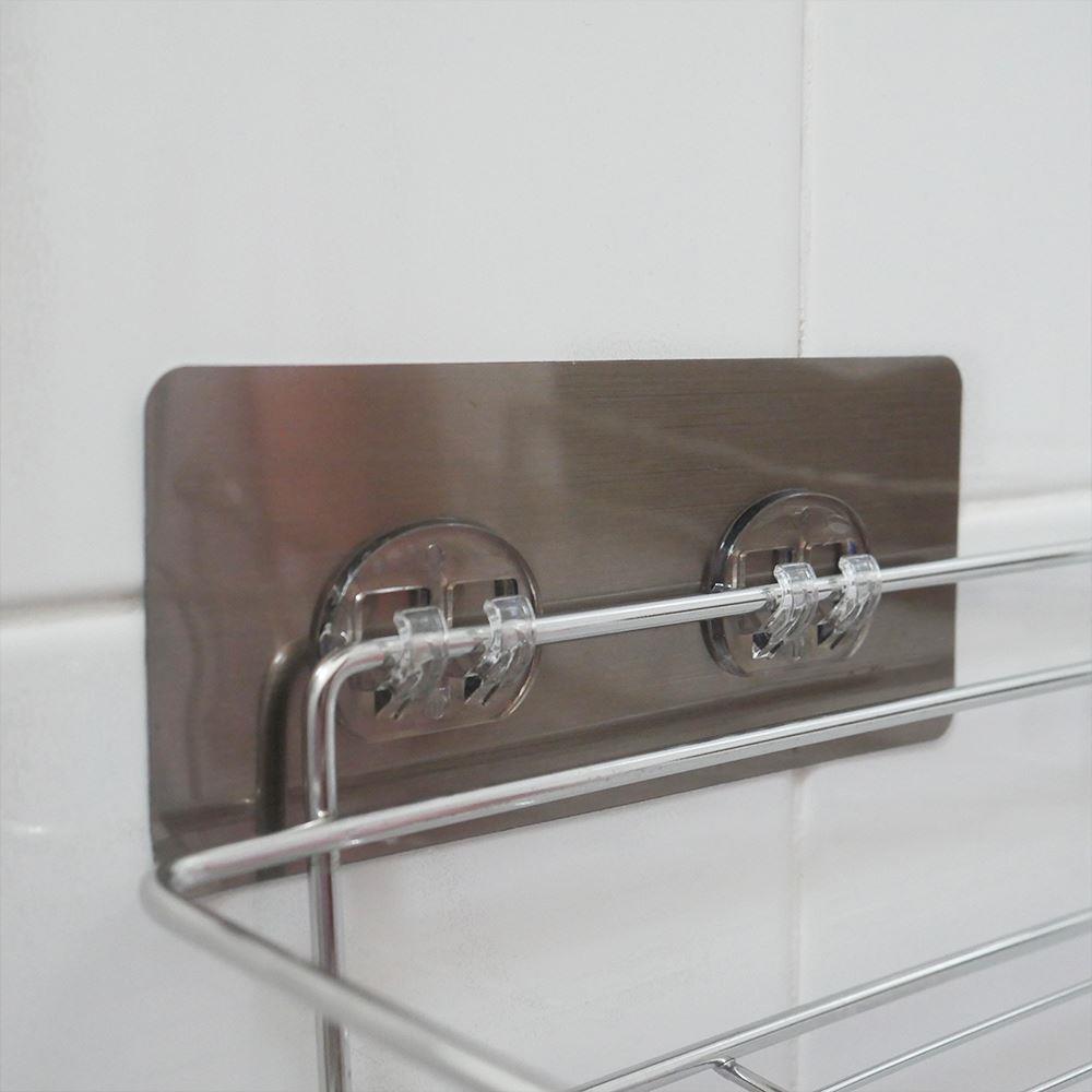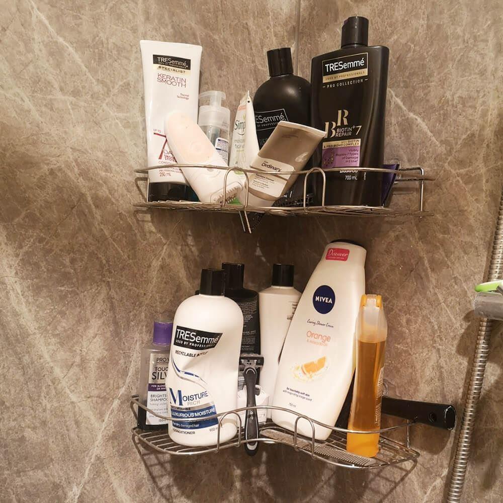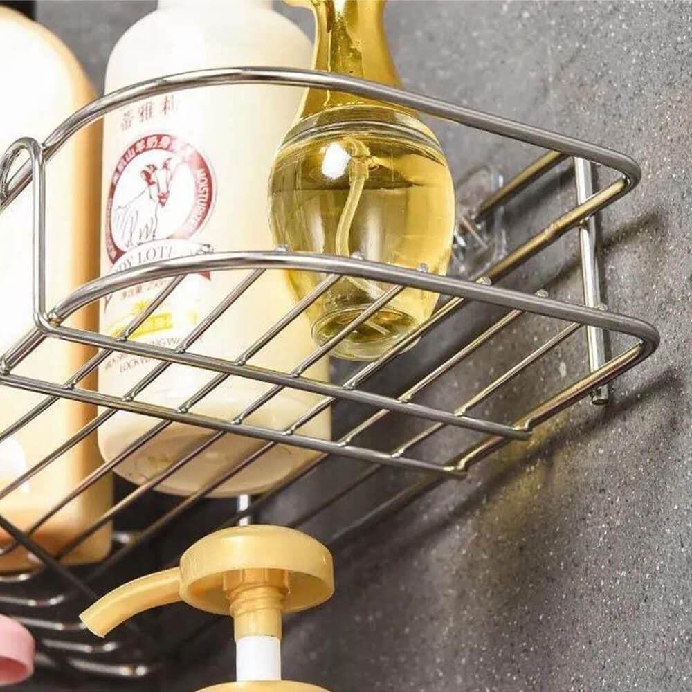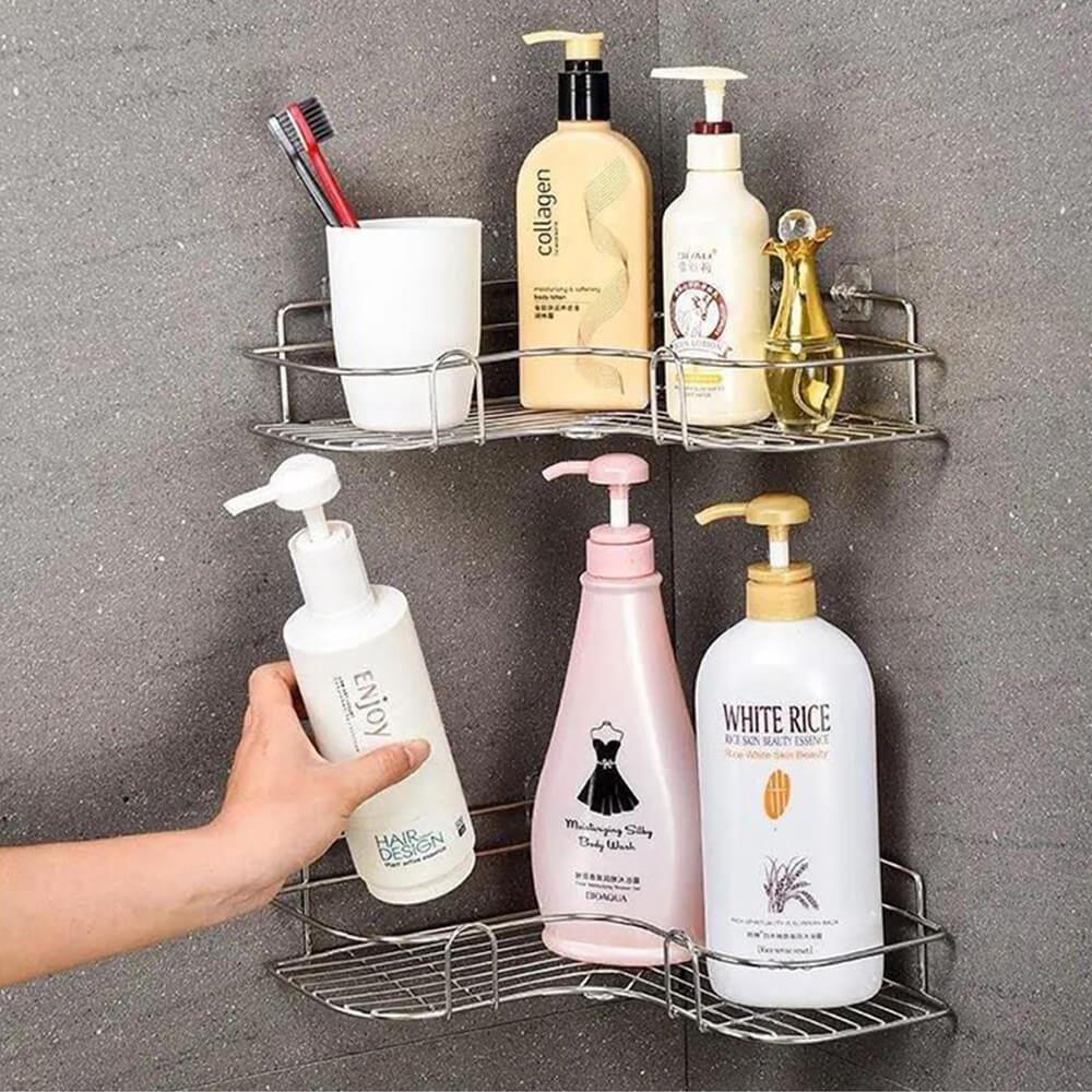 Úložný prostor bez nutnosti vrtání? Tady je! Nerezová rohová polička vám obklady neponičí. Její instalace je opravdu jednoduchá, stačí nalepit a drží jako přibitá. Lepítka aplikujte na suchý, rovný a hladký povrch.Polička je ideální na mýdla, šampony, sprchové gely či krémy. Má moderní nerezový design a tak se hodí do každého interiéru. Díky tomu, že nemá plné dno, se v ní nedrží přebytečná voda.