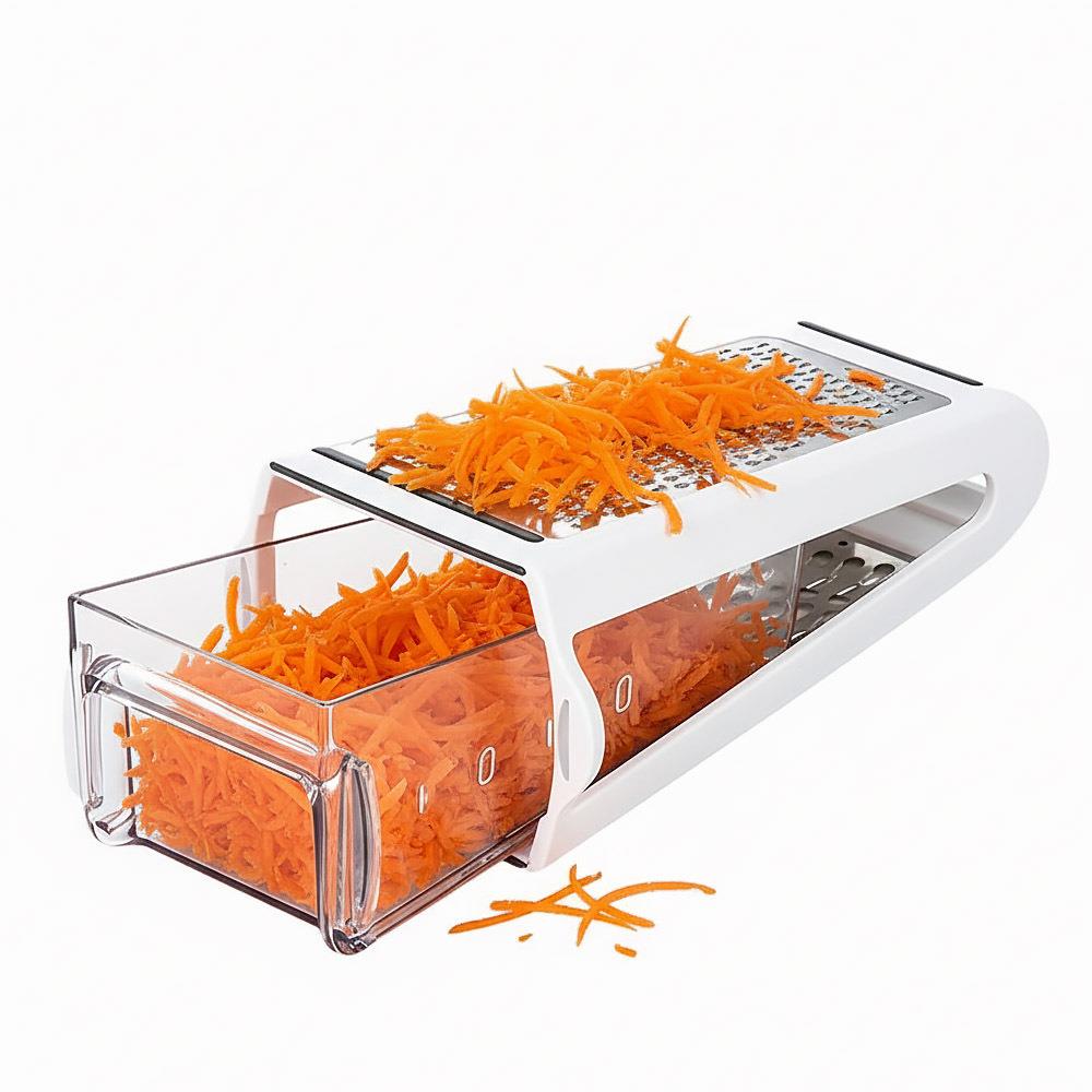 Strouhání nemusí být otrava ani risk pro prsty. Toto praktické struhadlo se zásobníkem vám práci výrazně usnadní. Díky možnosti strouhat oběma směry zvládnete vše rychleji a bez zbytečné námahy. Nastrouhané suroviny padají rovnou do zásobníku, takže žádný nepořádek kolem. Stačí ho vysunout, přenést a použít přesně tolik, kolik potřebujete. Jednoduché, čisté a hlavně pohodlné řešení do každé kuchyně.