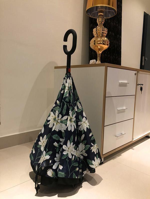 Jeho asi největší výhodou je, že díky jeho konstrukci zůstává voda po uzavření uvnitř deštníku, a vy si ho v klidu můžete položit na sebe, aniž by na vás kapala voda!