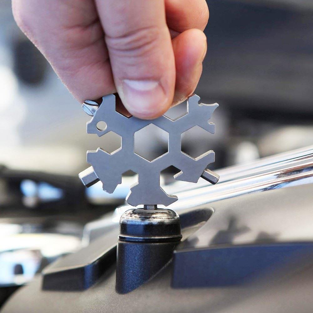 Nemusíte s sebou tahat různé druhy šroubováků, otvíráků, klíčů apod. Stačí vám pouze tato ocelová vločka 15v1, která vše toto zastoupí! Tento šikovný nástroj využijete na cestách, ale i třeba v kanceláři či ve skladu k rozříznutí krabice. A nebo jen zkrátka když budete potřebovat něco utáhnout, povolit či jen otevřít láhev od piva!