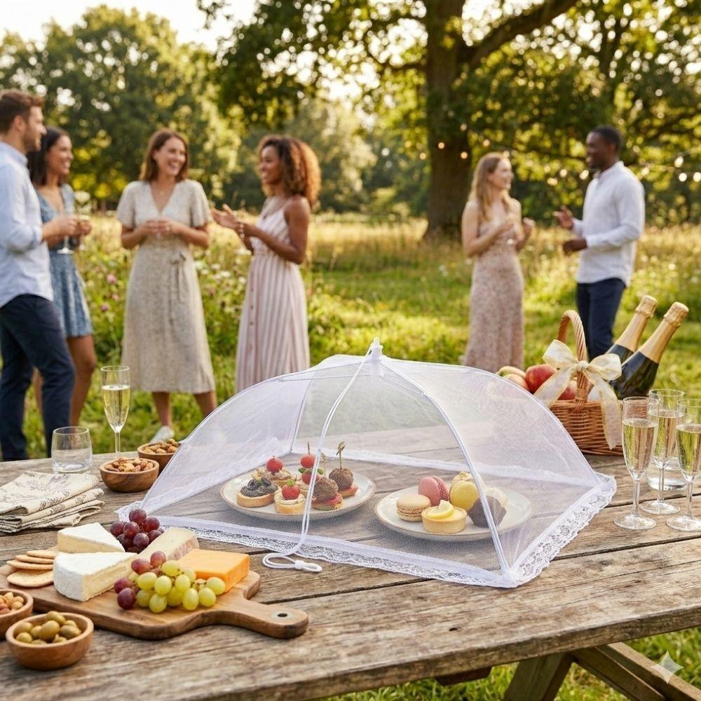 Ochrana před dotěrným hmyzem Rozměr ideální na talíře i servírovací mísy Na grilovačku, piknik i venkovní posezení Skladné skladování i přenášení