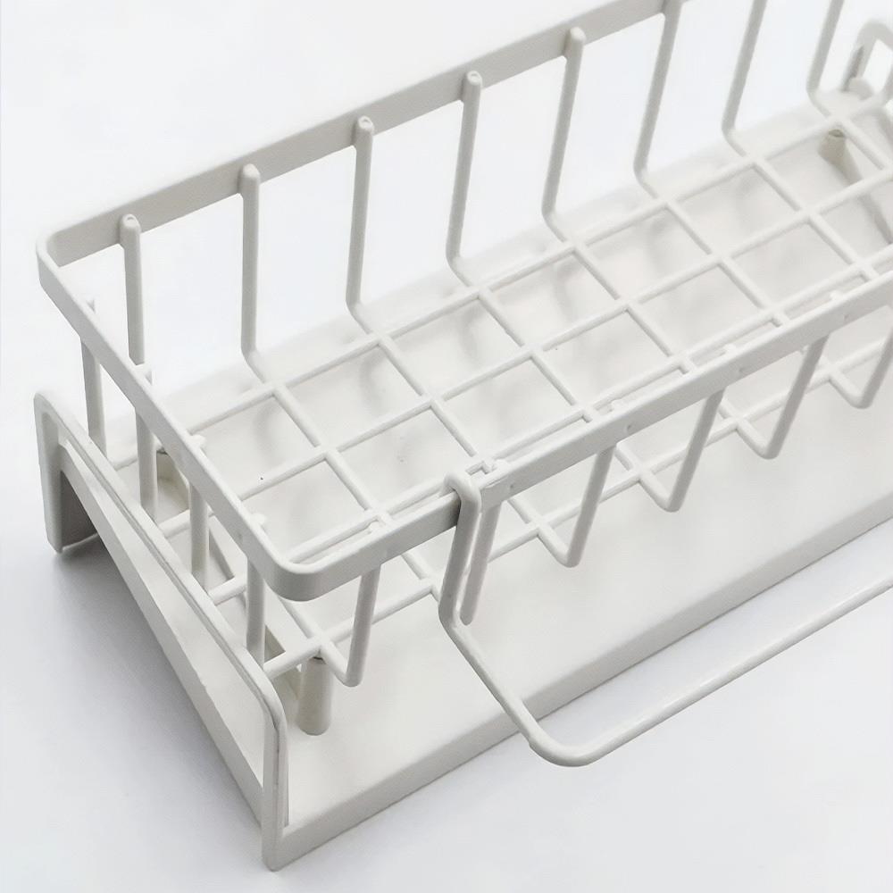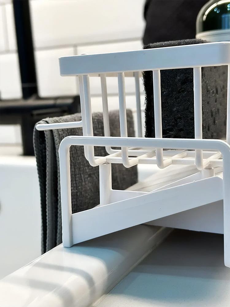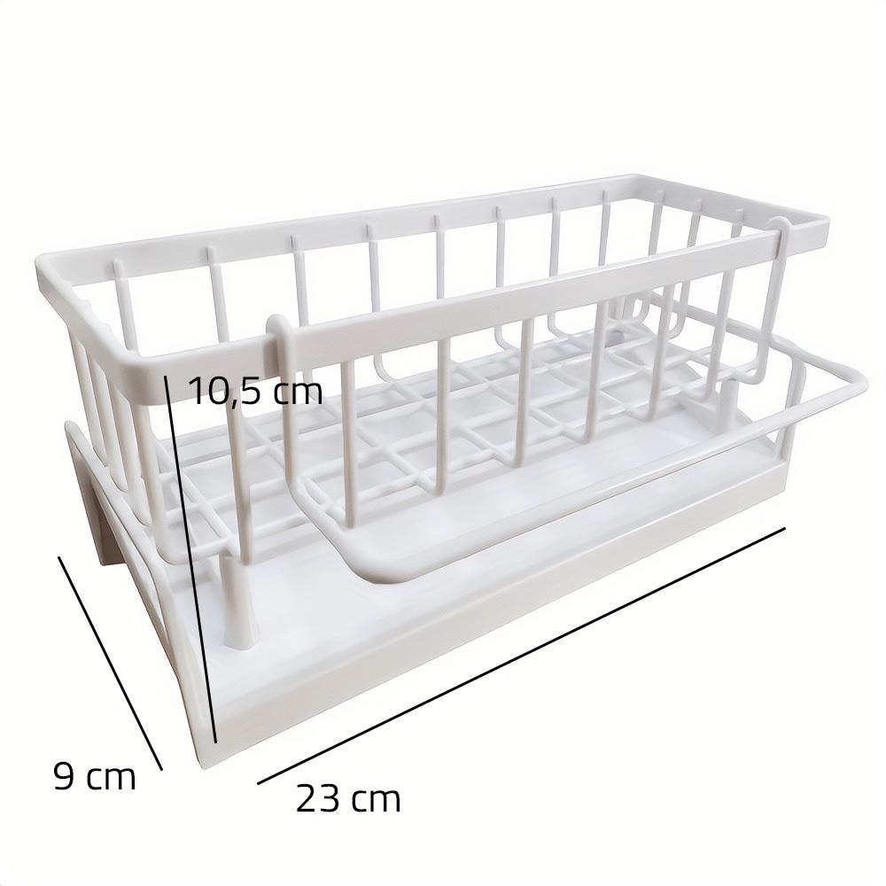 Méně loužiček kolem dřezu: díky šikmému dnu voda sama odtéká pryč Všechno na jednom místě: houbička, kartáč i saponát jsou přehledně pohromadě a hned po ruce Rychlejší schnutí bez zápachu: otevřené provedení pouští vzduch, takže věci lépe proschnou Nezabere skoro žádné místo: malý rozměr je ideální i do menších kuchyní a k úzkému dřezu Čistý, nenápadný vzhled: jednoduchá bílá barva zapadne do moderní i klasické kuchyně