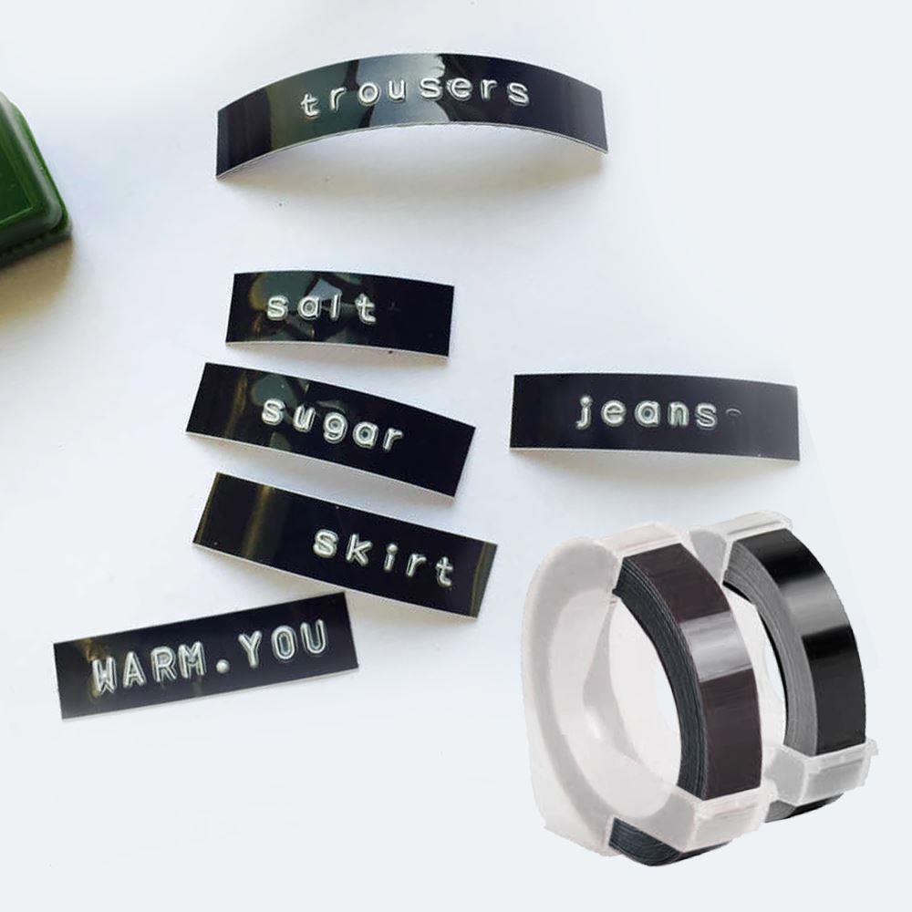 Snadné vytváření moderních popisků Černé štítky s 3D nápisy jsou stylové a praktické Samolepící štítky na dózy, deníky či dárky