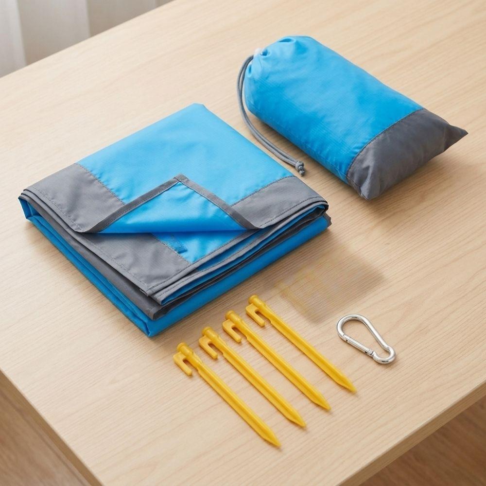 Prostorná podložka Snadno se čistí a udržuje Kolíky pro ukotvení součástí balení Sáček pro pohodlné přenášení Na pláž, piknik i dovolenou