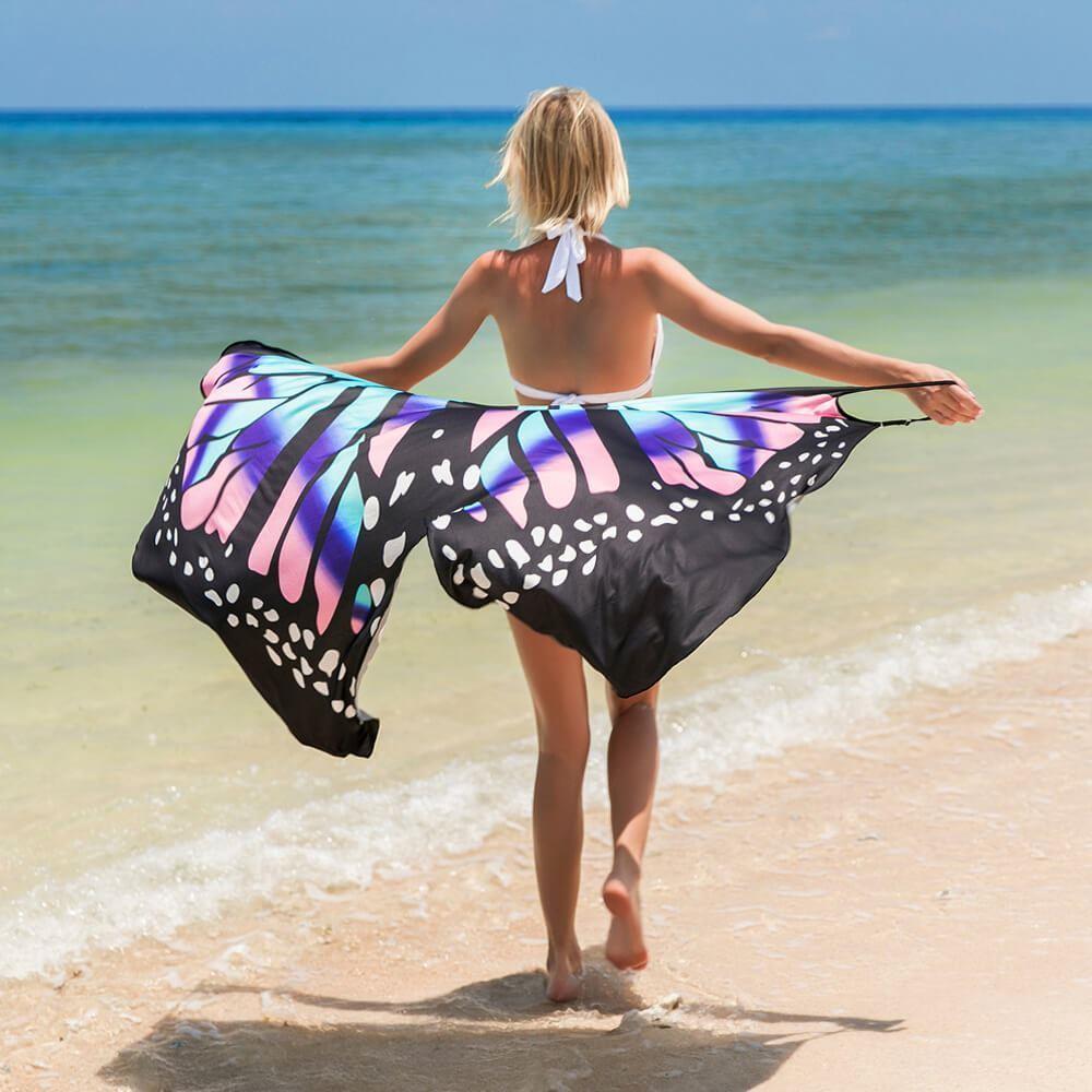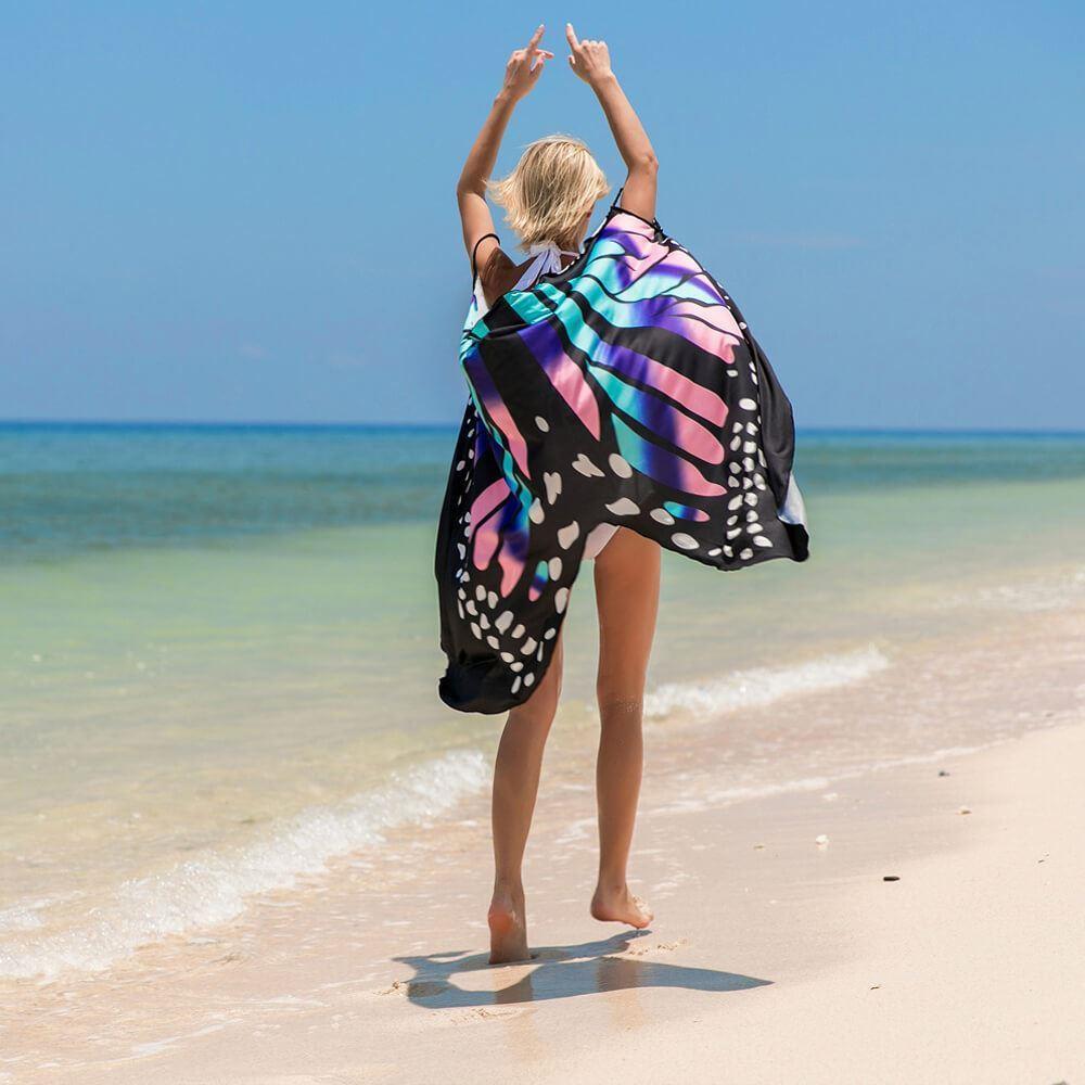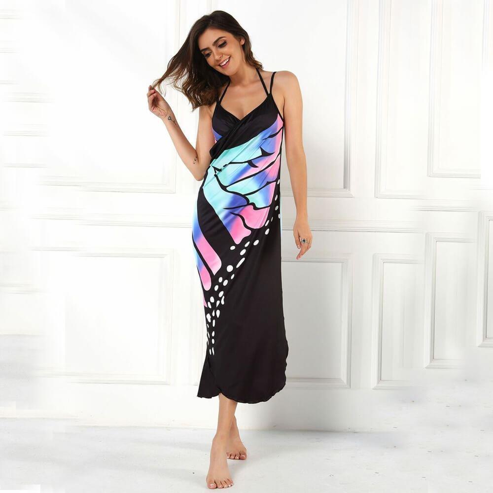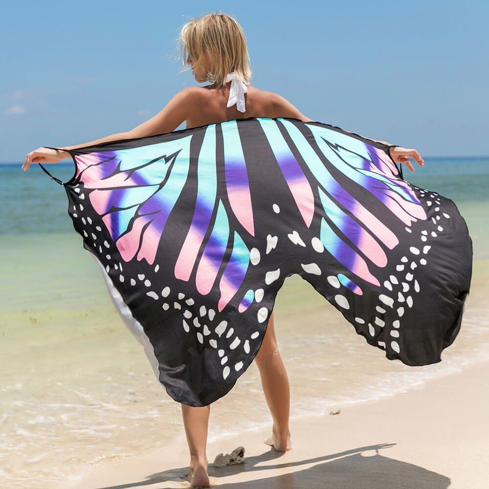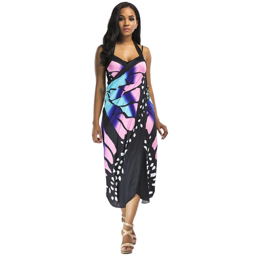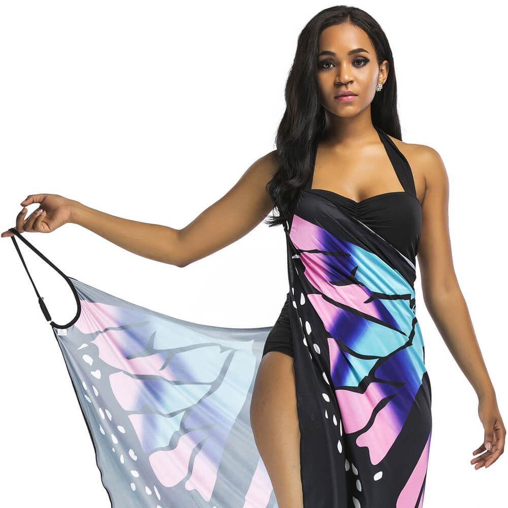S plážovými šaty se vzorem motýlích křídel upoutáte pozornost na každé pláži. Buďte na pláži nepřehlédnutelná a roztáhněte křídla jako motýl! Užijte si dovolenou s výraznou tunikou, která povznese váš vzhled i zakryje nedostatky. Jemná špagetová ramínka a výstřih do V krásně doplní střih šatů, které doslova lichotí postavě. Plážovou tuniku zavinete klasickým způsobem, ale lze ji uvázat jen na boku. Přehoďte ji přes plavky a vyrazte k moři nebo k bazénu. Budete v pohodlí a zároveň se cítit sebevědomě!