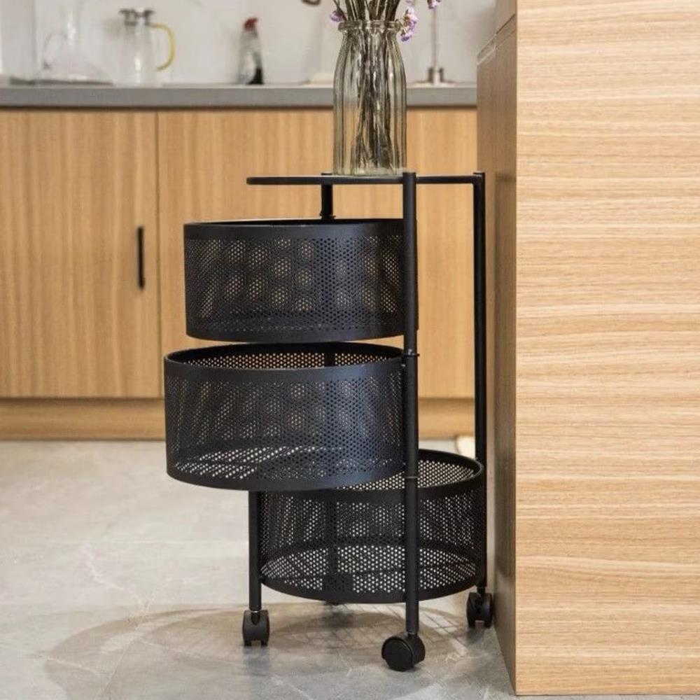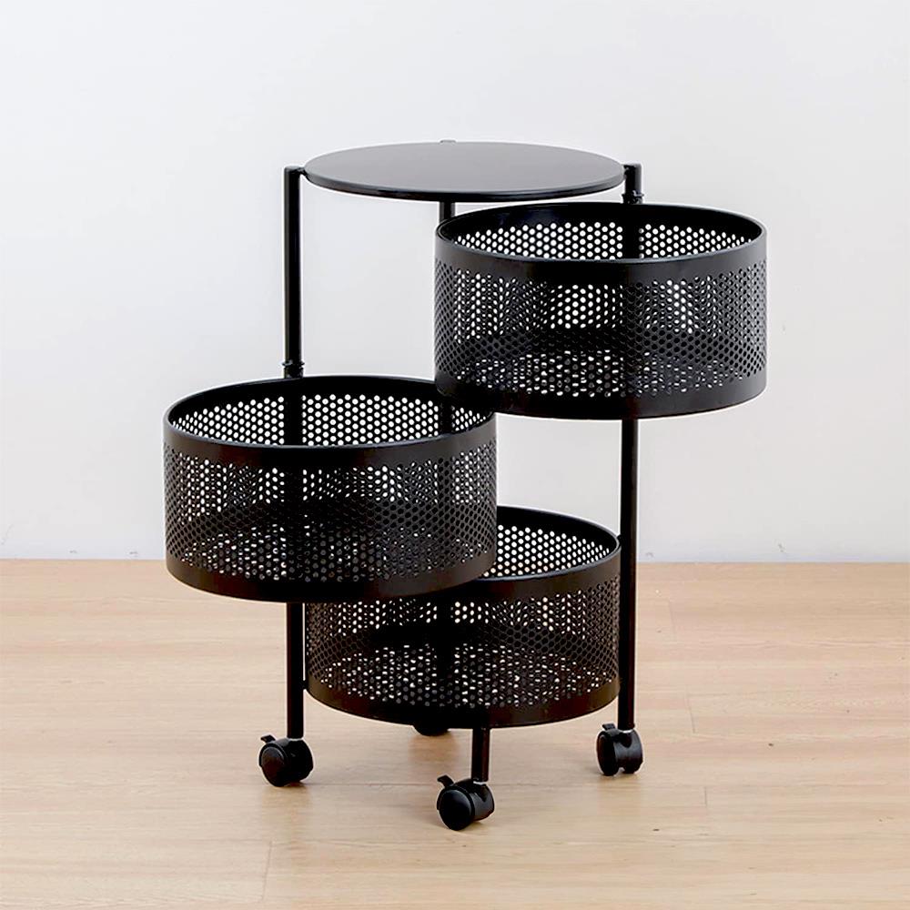 3 úložné košíky – všechno na dosah ruky Vybavený kolečky pro snadné přemisťování po místnosti 2 kolečka mají brzdu – pro bezpečné zajištění na místě Široké možnosti použití – skvělý doplněk do kuchyně, koupelny, kanceláře či šatny Perforované designy košíků – poskytují optimalizovanou cirkulaci vzduchu