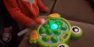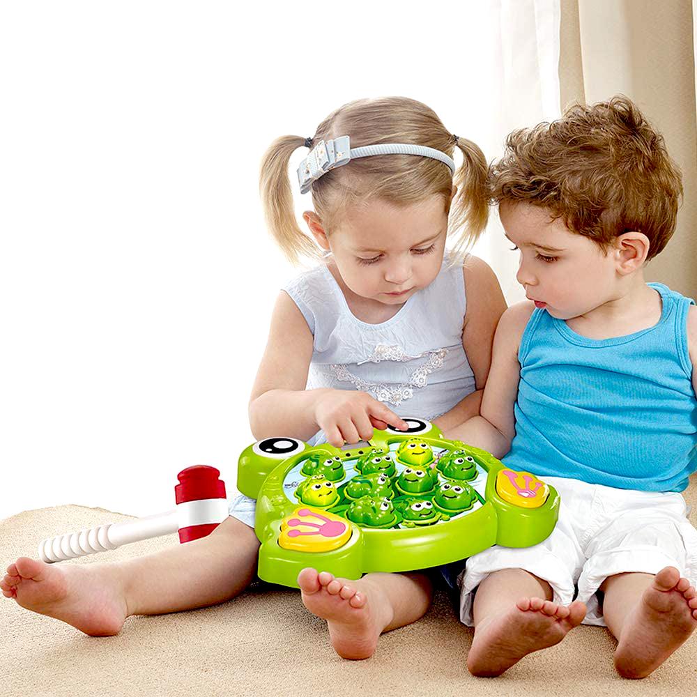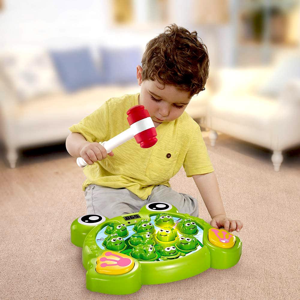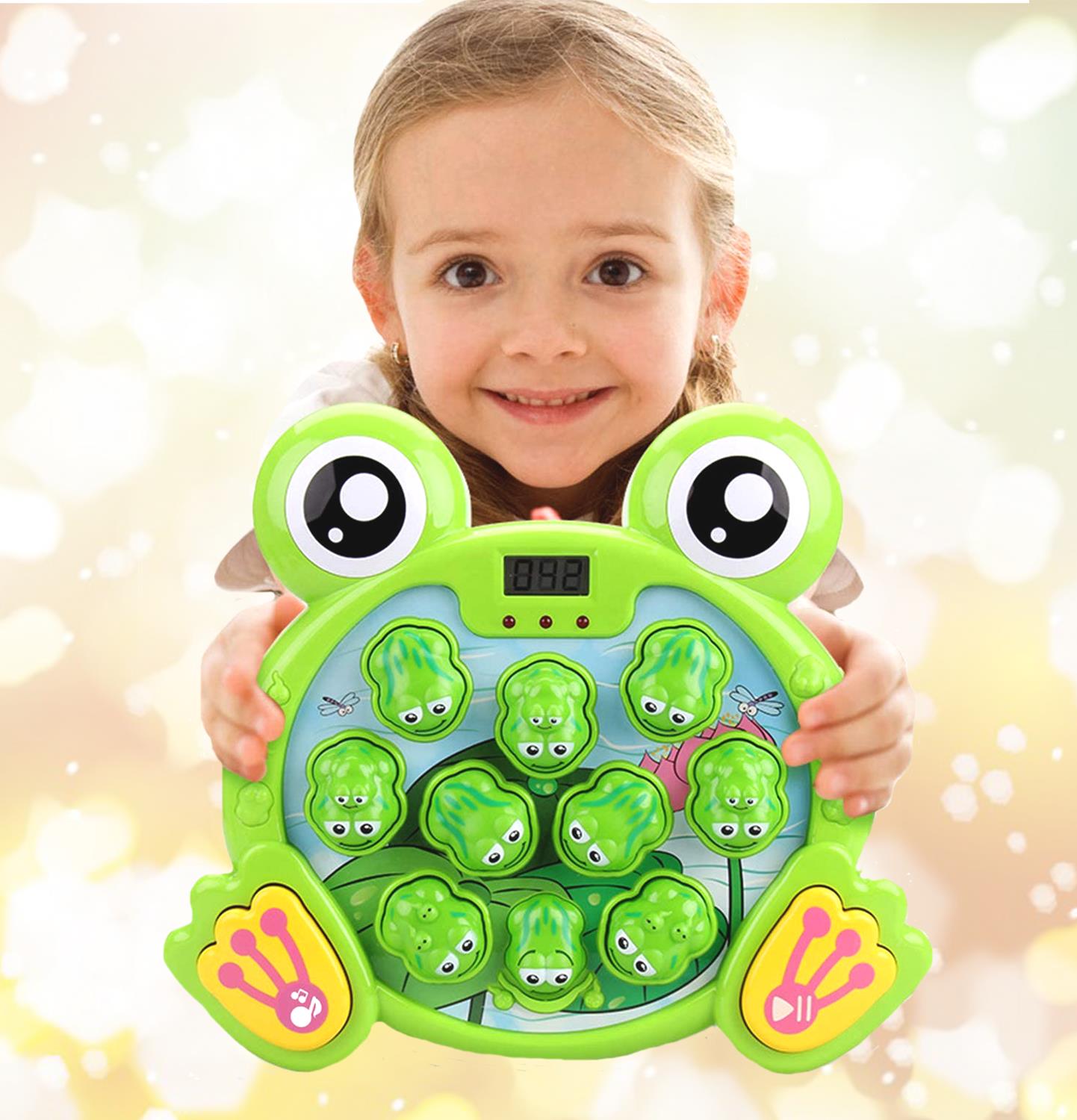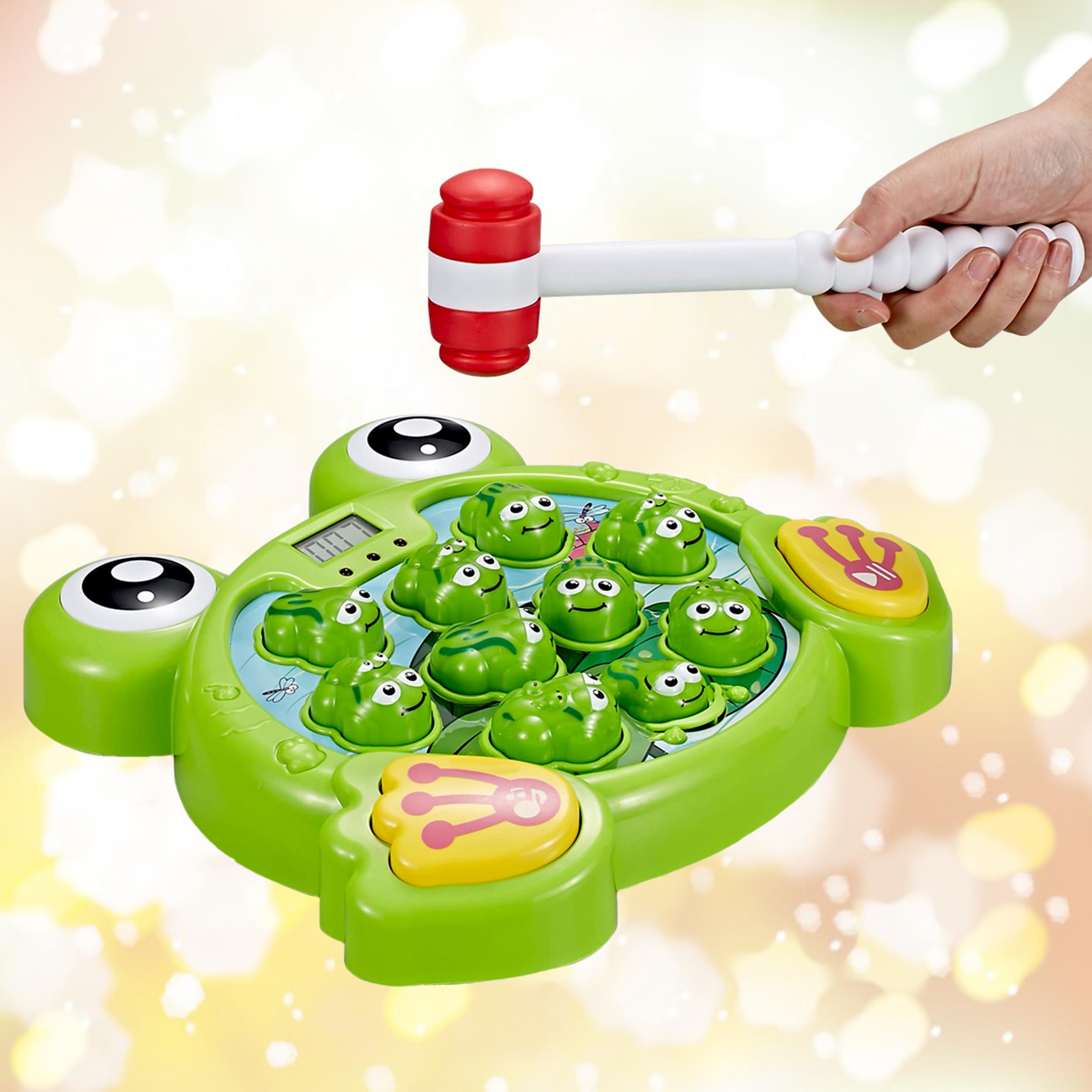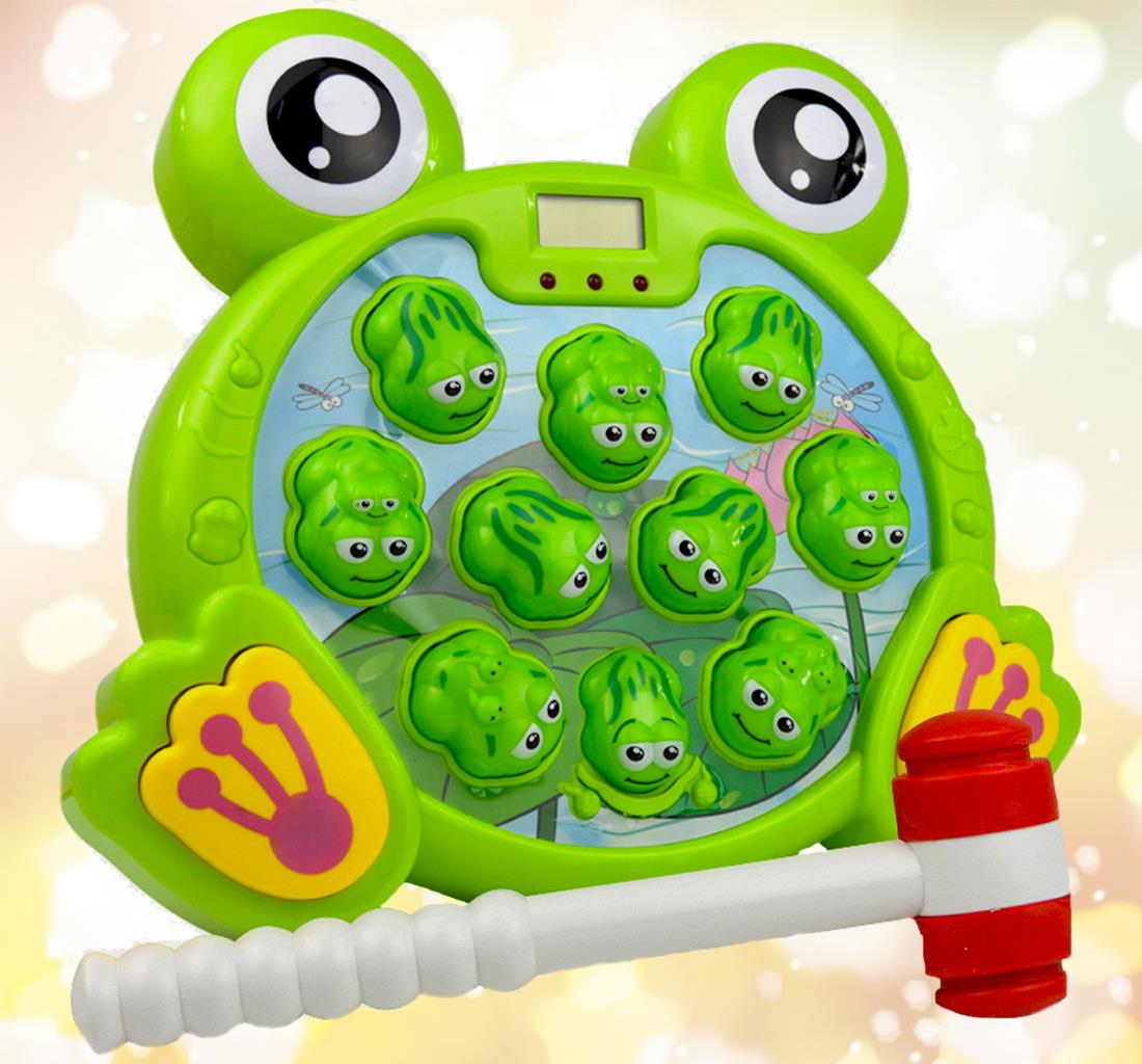 Rádi byste zabavili své ratolesti a zároveň je něčemu naučili? Díky této interaktivní hře podpoříte rozvoj jejich dovedností – jemnou motoriku, koncentraci, a schopnost poznávat. Kladívkem se snažíte udeřit co nejrychleji žabáka, který se právě rozsvítil. Skóre zaznamenává LCD displej. Roztomilé žabáky doprovází veselé melodie a zvuky, jejichž hlasitost se dá nastavit. Nastavit se dají i dva režimy hry – jeden pro úplné začátečníky a druhý pro pokročilejší – a 38 stupňů obtížnosti u každého.